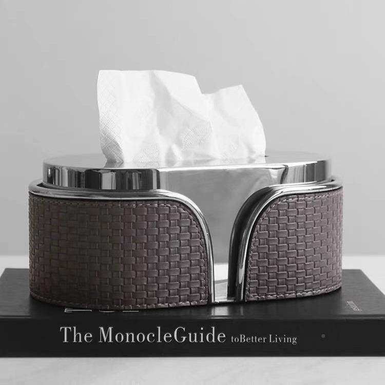 📚 桌现代轻奢不锈皮KVV质抽茶纸盒创意客厅摆件桌面钢餐几装饰品纸
