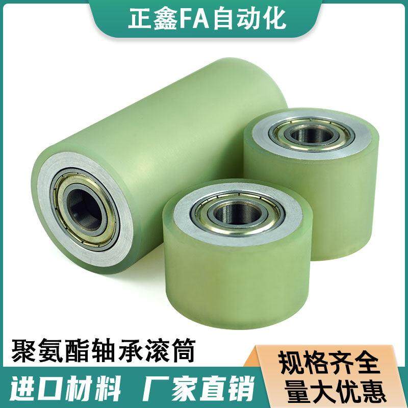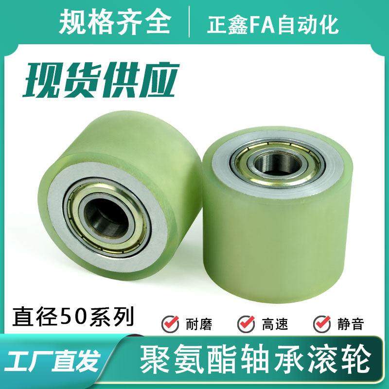 📚 外径50铝芯双轴承聚氨酯包胶轮硅胶橡胶PU无动力包胶滚筒托轮胶辊