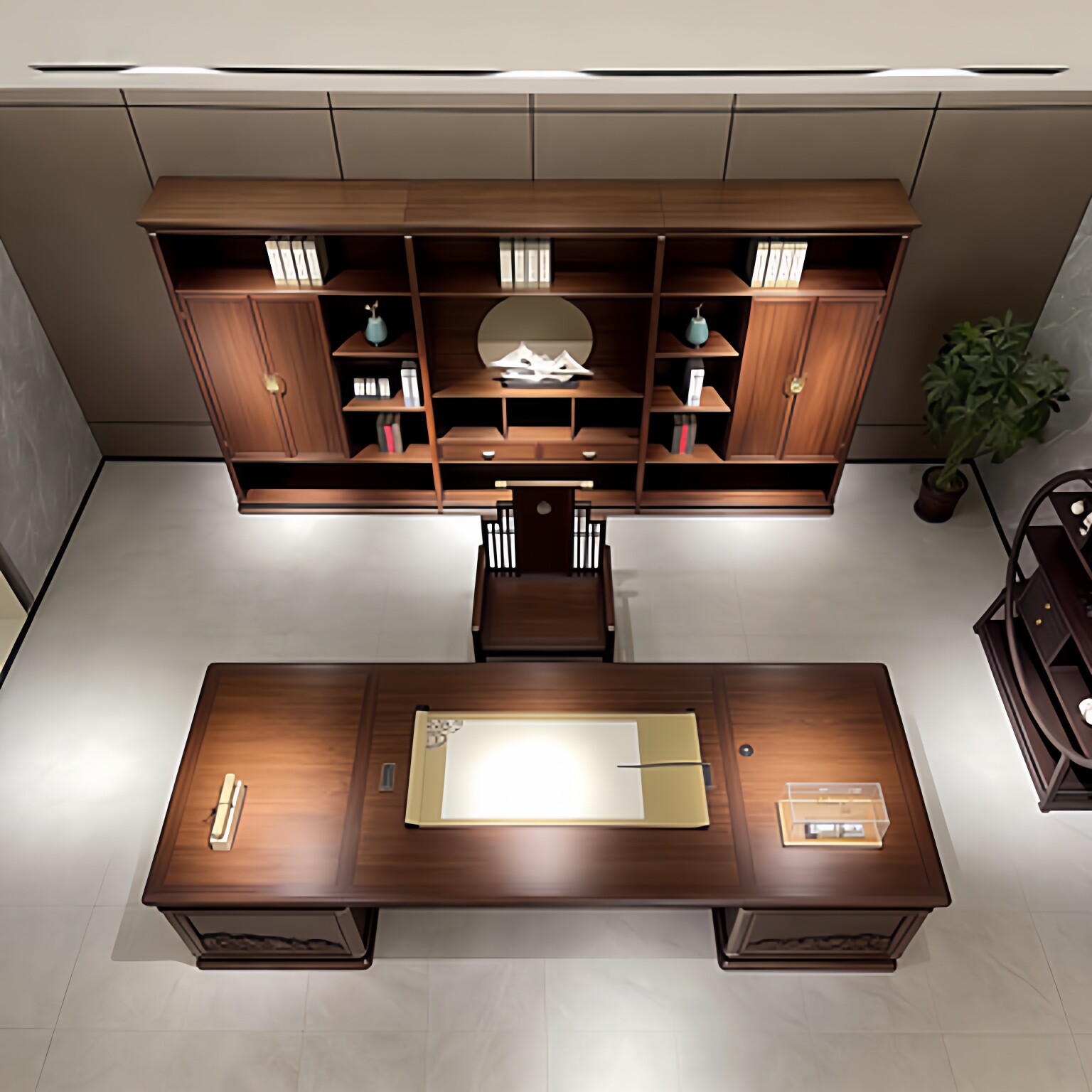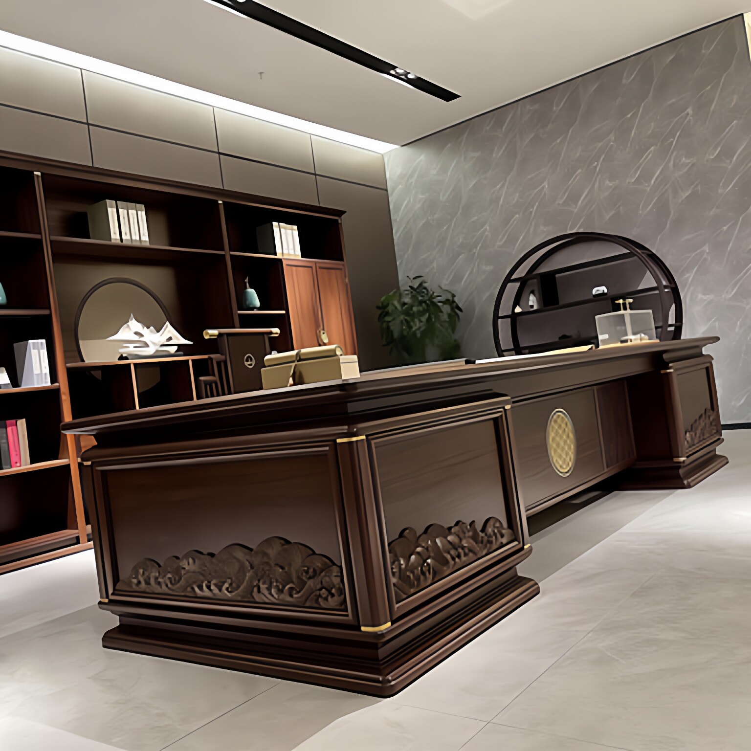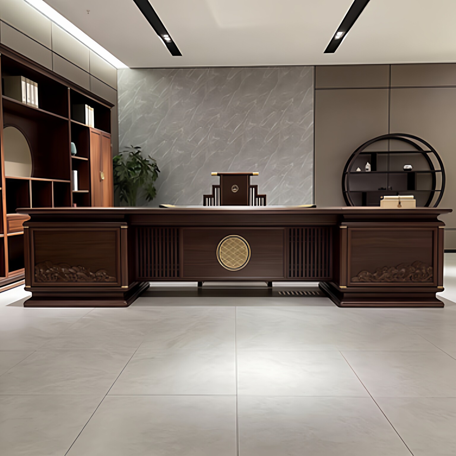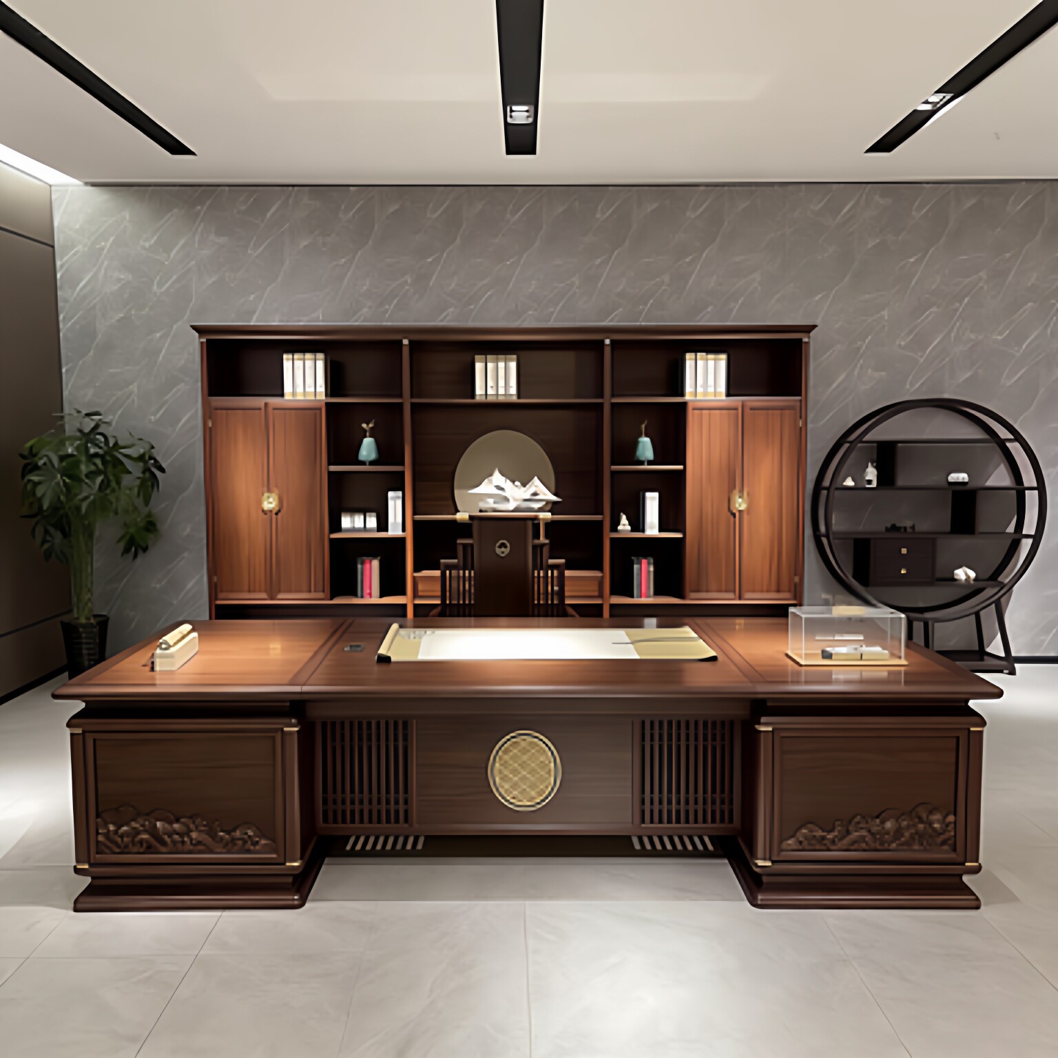 📚 新中式老板桌实木办公桌椅组合总裁办公室家具简约现代大班台定制