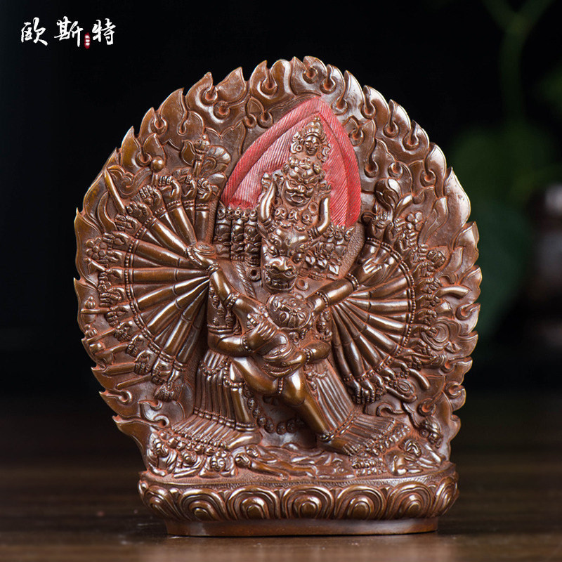 📚 欧斯特尼泊尔手工铜像 紫铜大威德金刚客厅装饰 家用玄关中式摆件