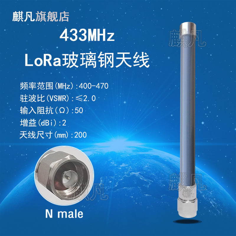 📚 Lora 433防水天线 N公头433M450M400-470M全向高增益2dbi室外AP基站网关节点灰色棒状防水玻璃钢天线