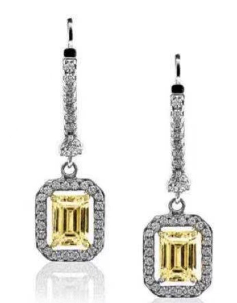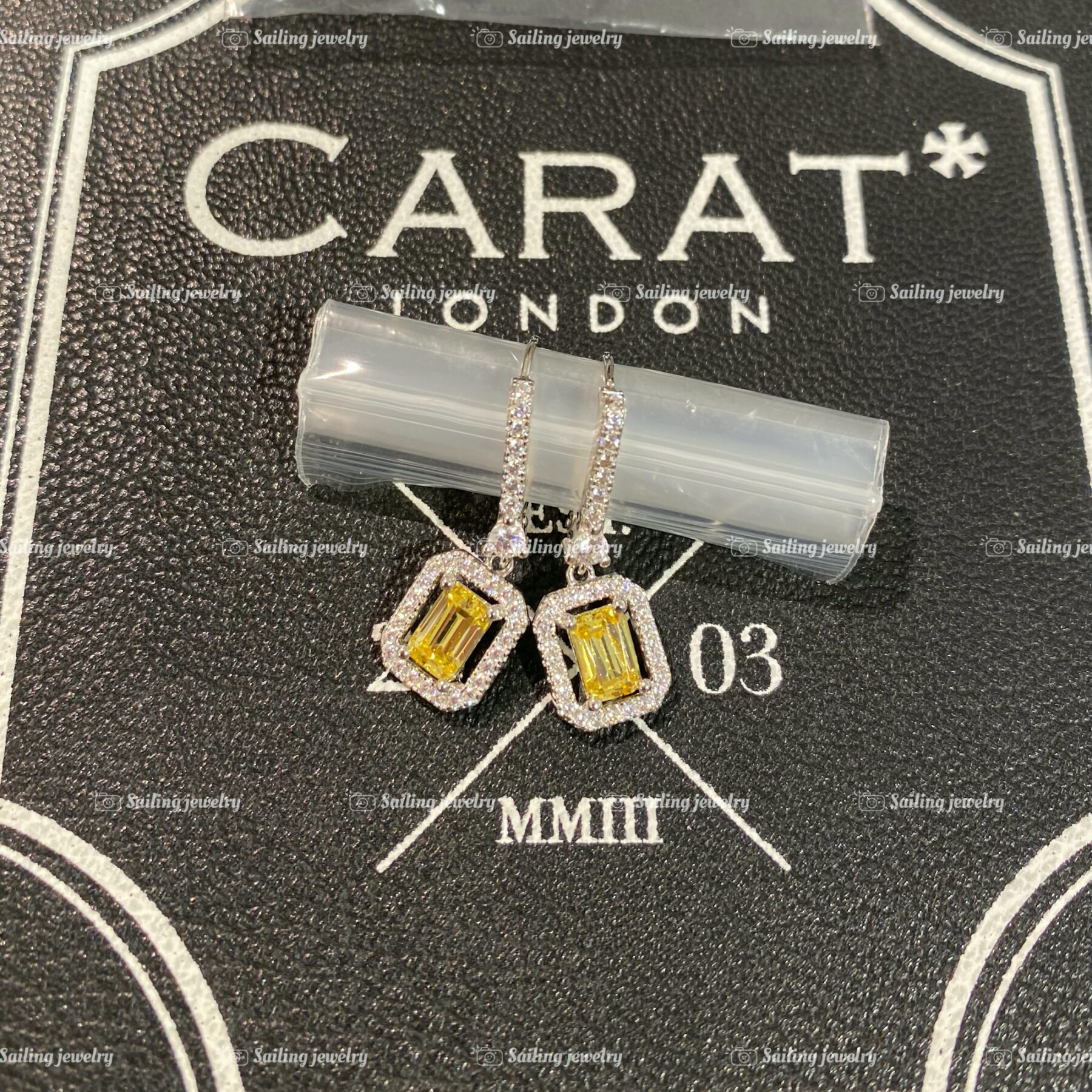 📚 香港专柜 CARAT LONDON 人工黄钻耳环 欧美风 独特祖母绿切割
