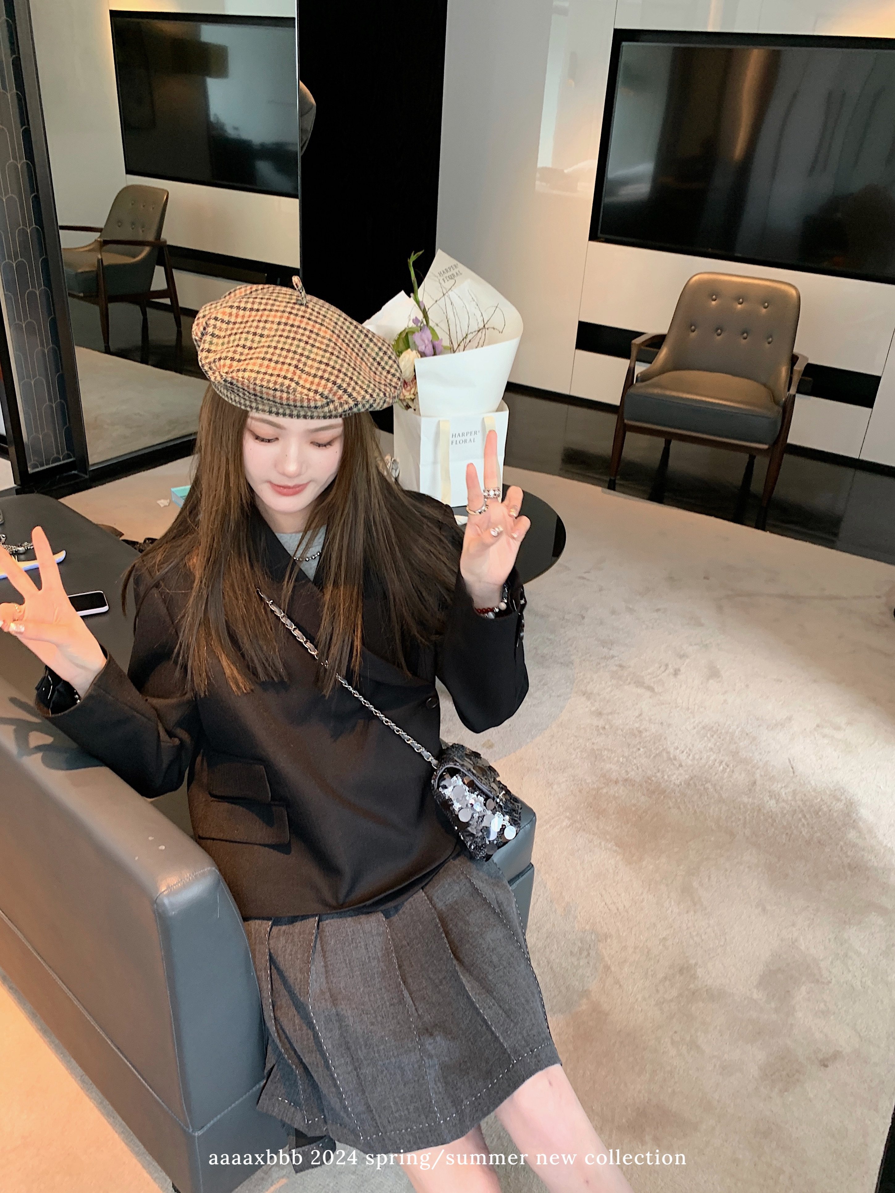 📚 aaaaxbbb 斯凯里格岛moon 不对称薄款黑色西装外套短款宽松上衣女