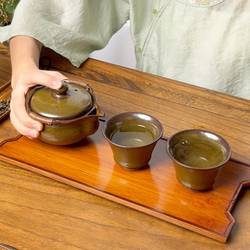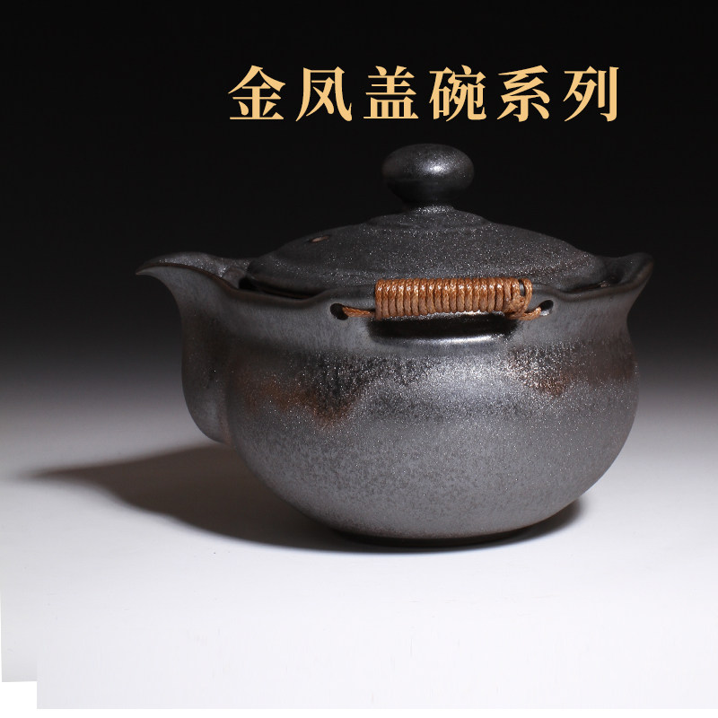 📚 茶与器手抓壶盖碗单个黑金不烫手盖碗茶学堂防烫旅行茶具快客杯组