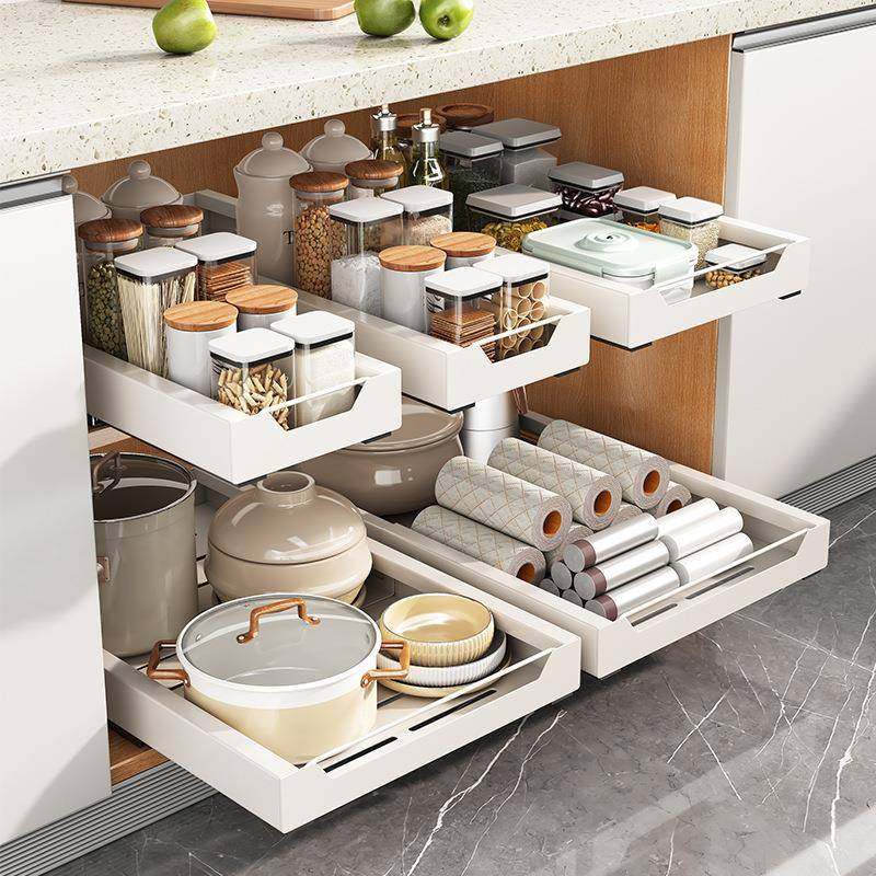 📚 【折扣价】橱柜内可伸缩抽屉置物架厨房炊具收纳拉篮调料下水槽抽