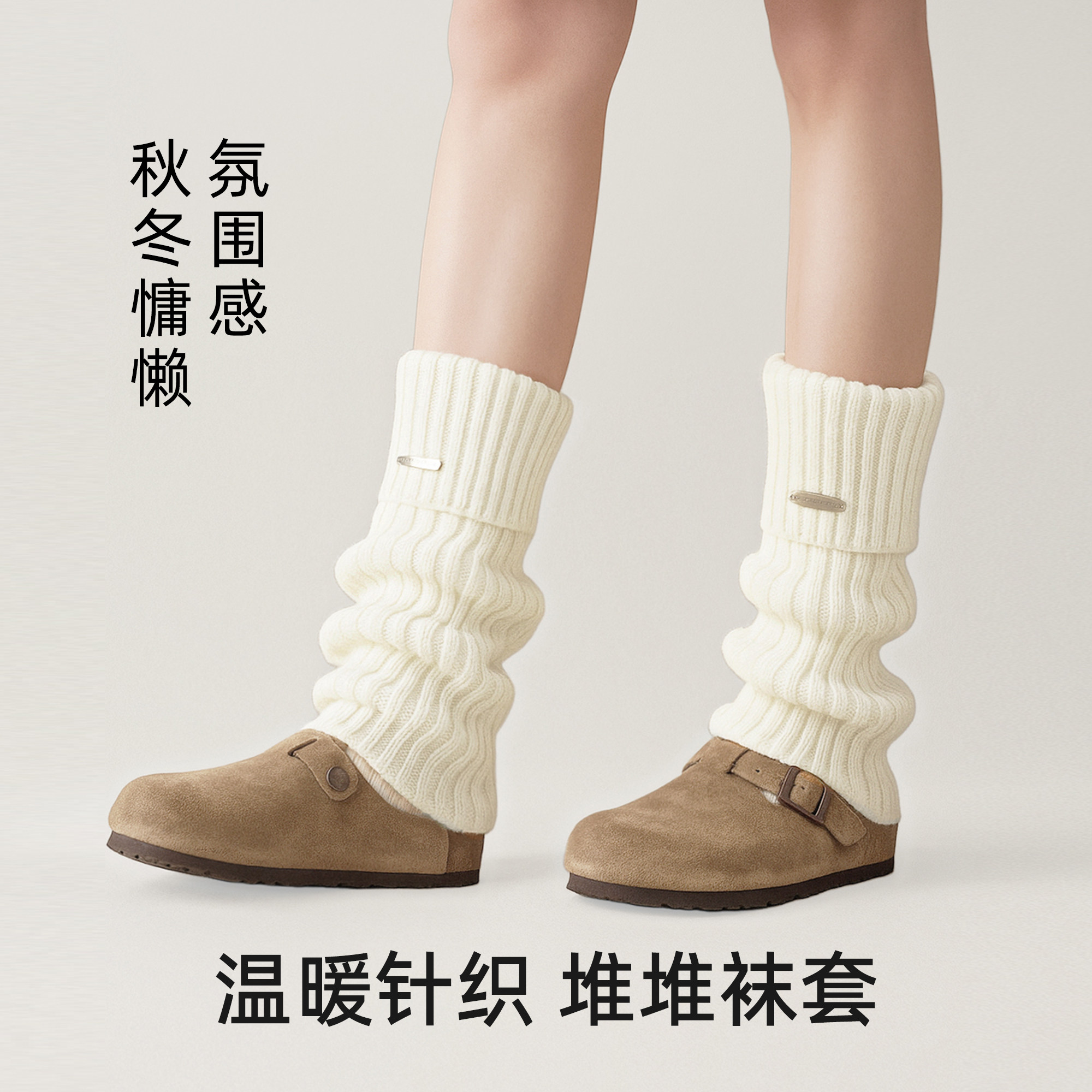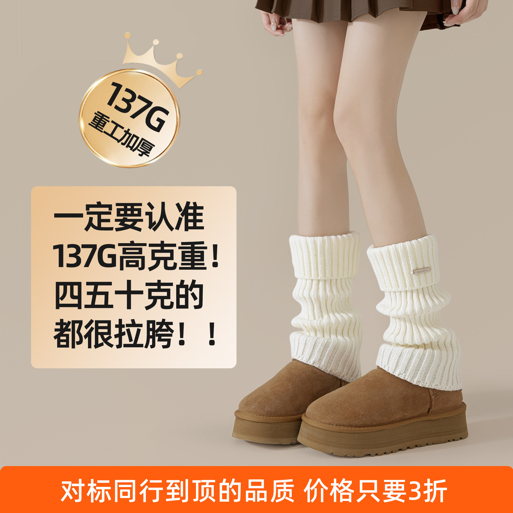 📚 "137g高克重质感超绝"白色堆堆袜套配雪地靴女冬加厚针织袜筒保暖