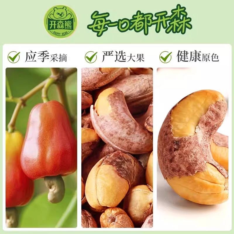📚 开森熊A170带皮大颗粒腰果坚果零食罐装越南紫衣特大腰果干果酥脆