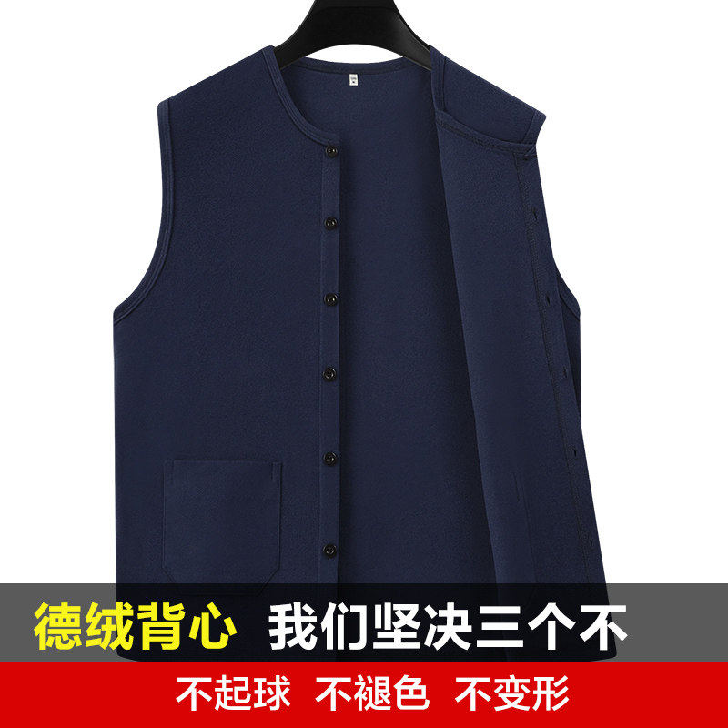 📚 申本德绒背心马甲中老年无袖加绒加厚老头保暖内搭爸爸开衫坎肩冬