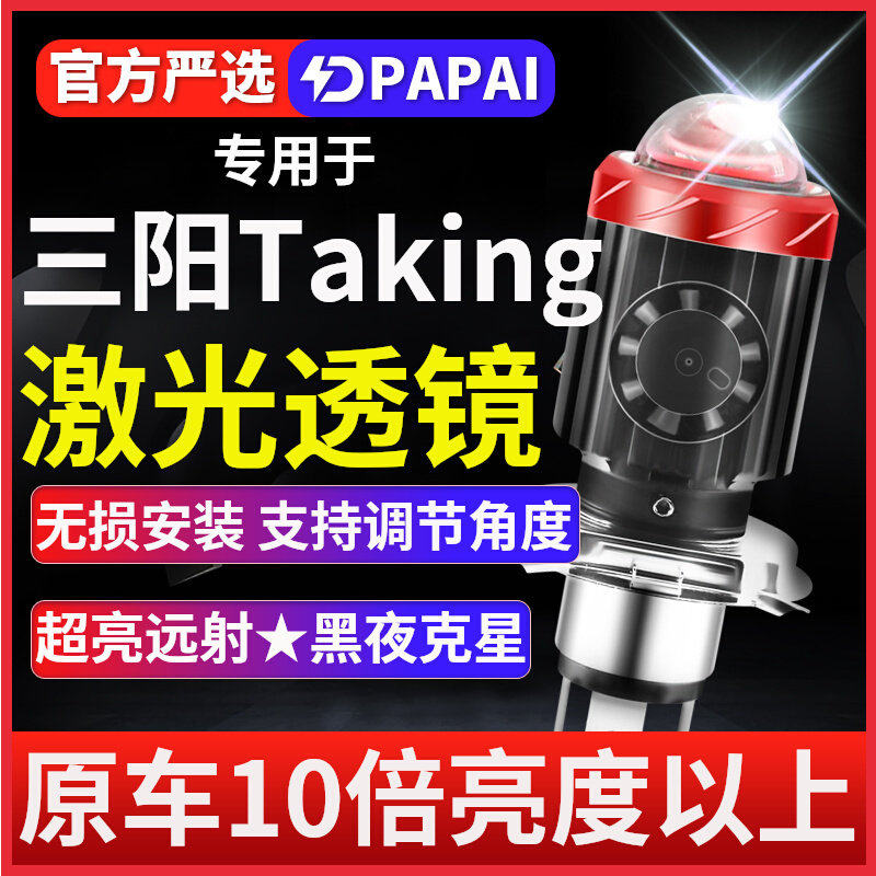 📚 三阳Taking摩托车LED激光透镜大灯改装配件远近一体三爪灯泡强光