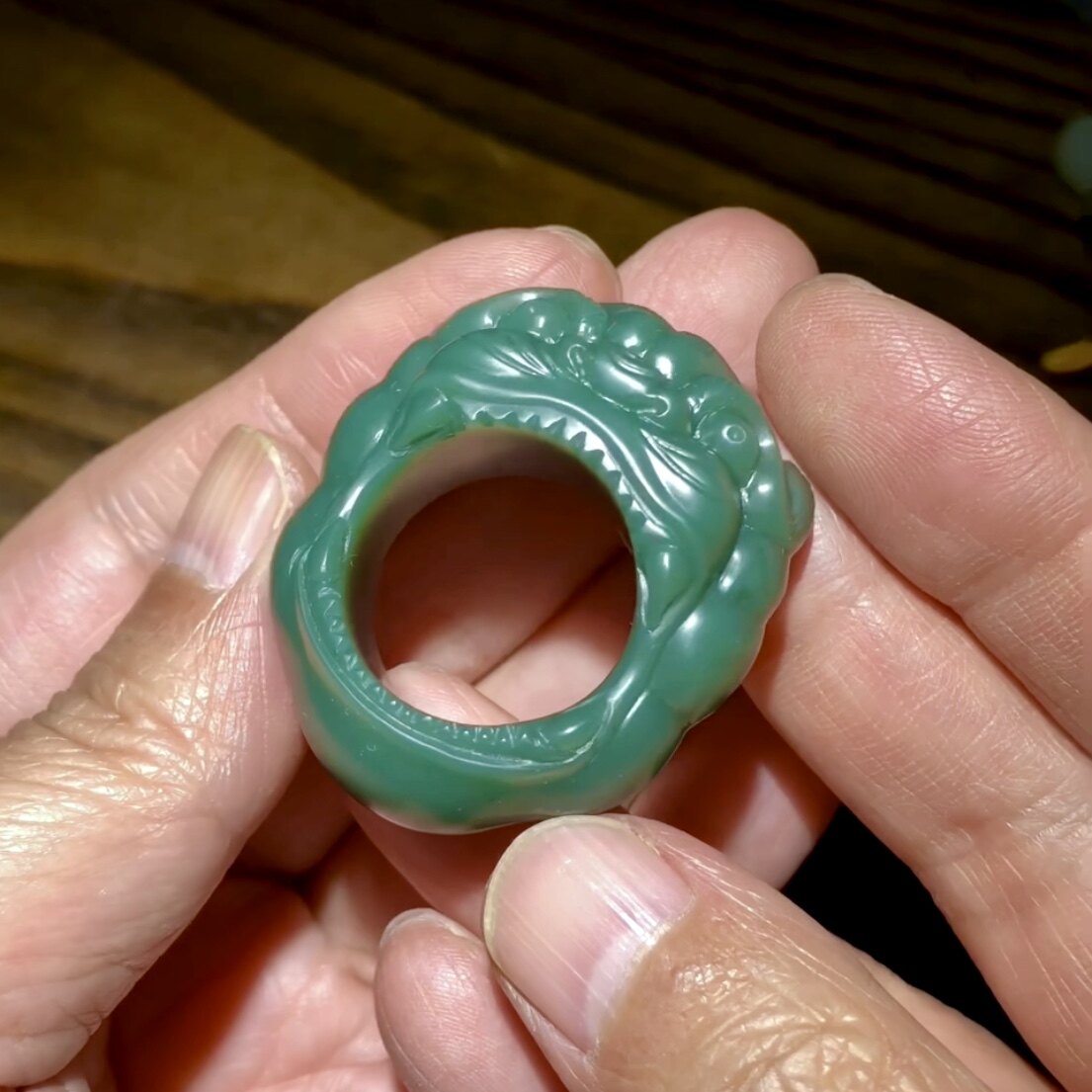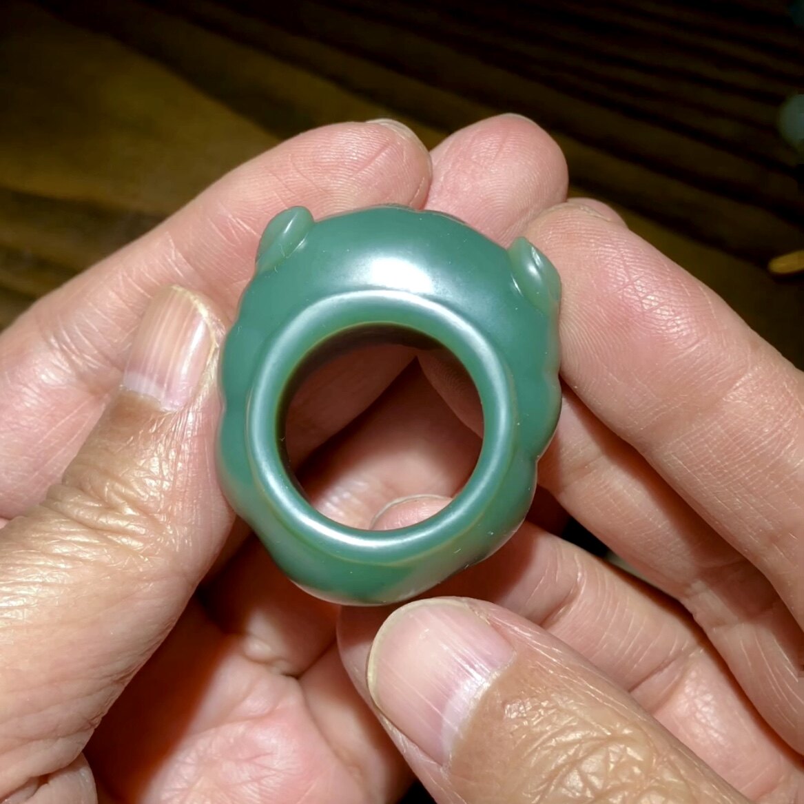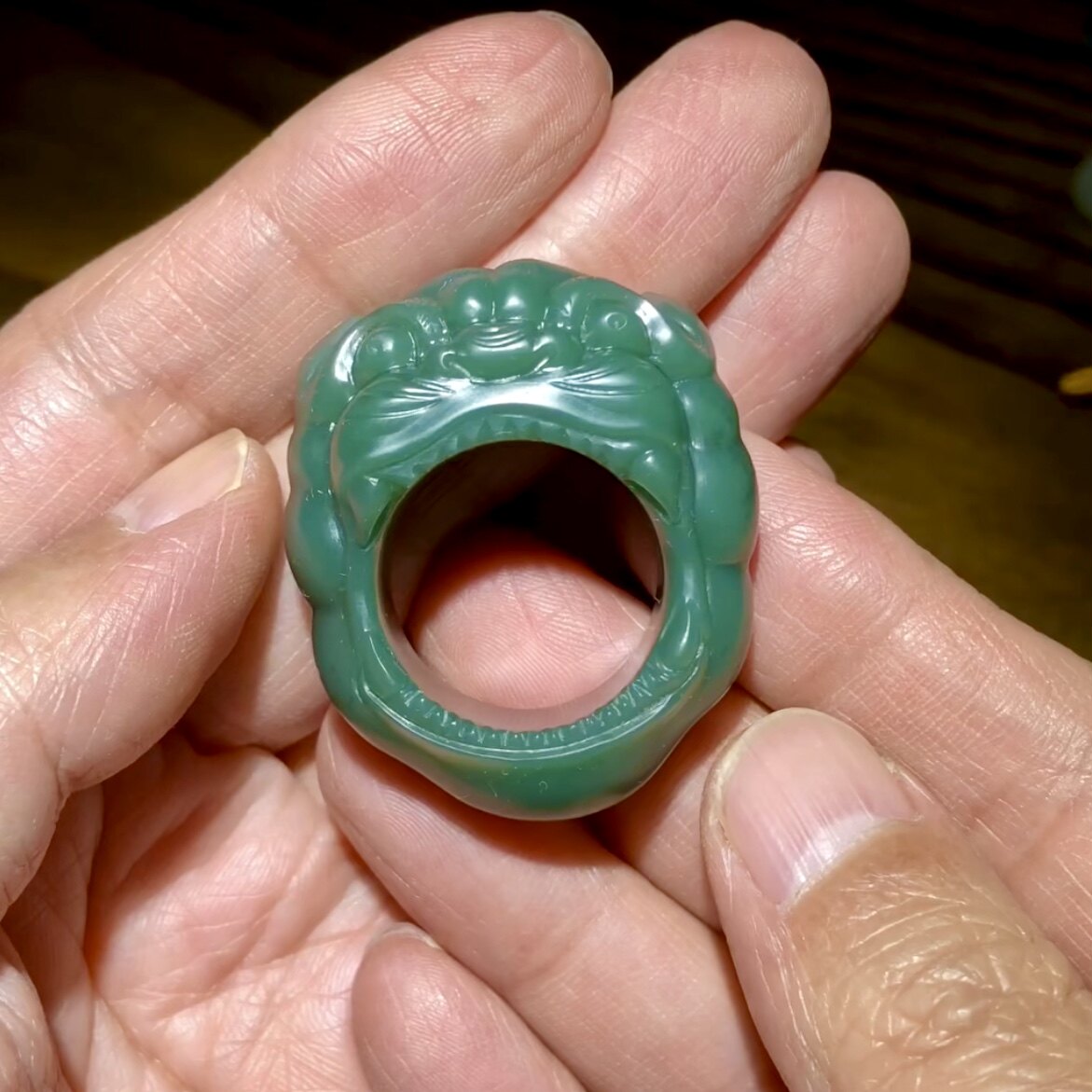 📚 老石头和田玉青玉籽料戒指扳指沙枣青虎面兽面生肖老虎把件26.1克