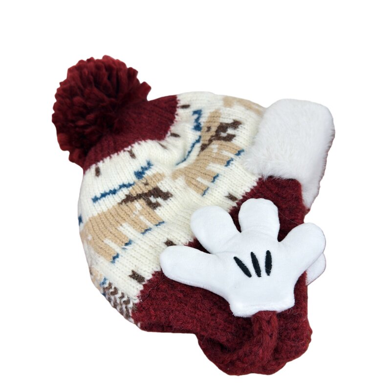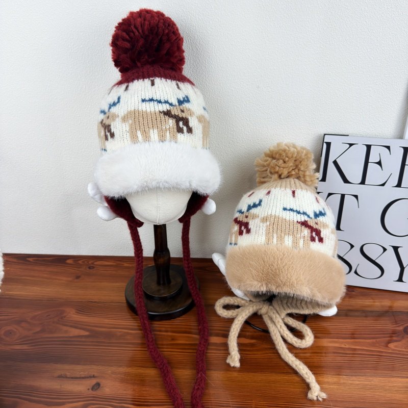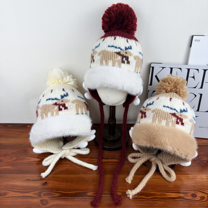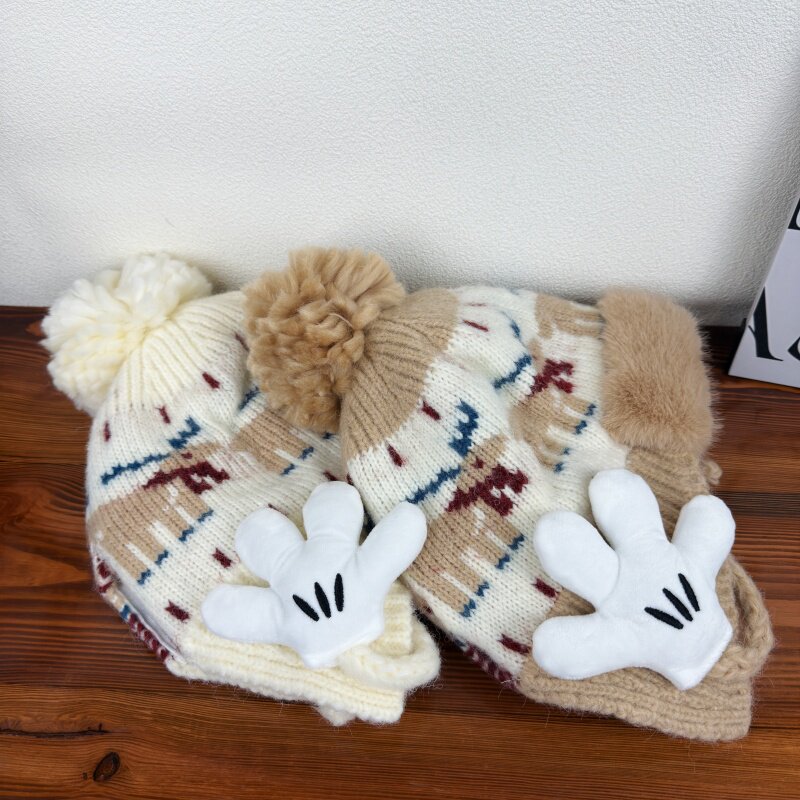 📚 韩系可爱米奇手掌毛绒球针织帽女秋冬圣诞小鹿加厚保暖百搭护耳帽