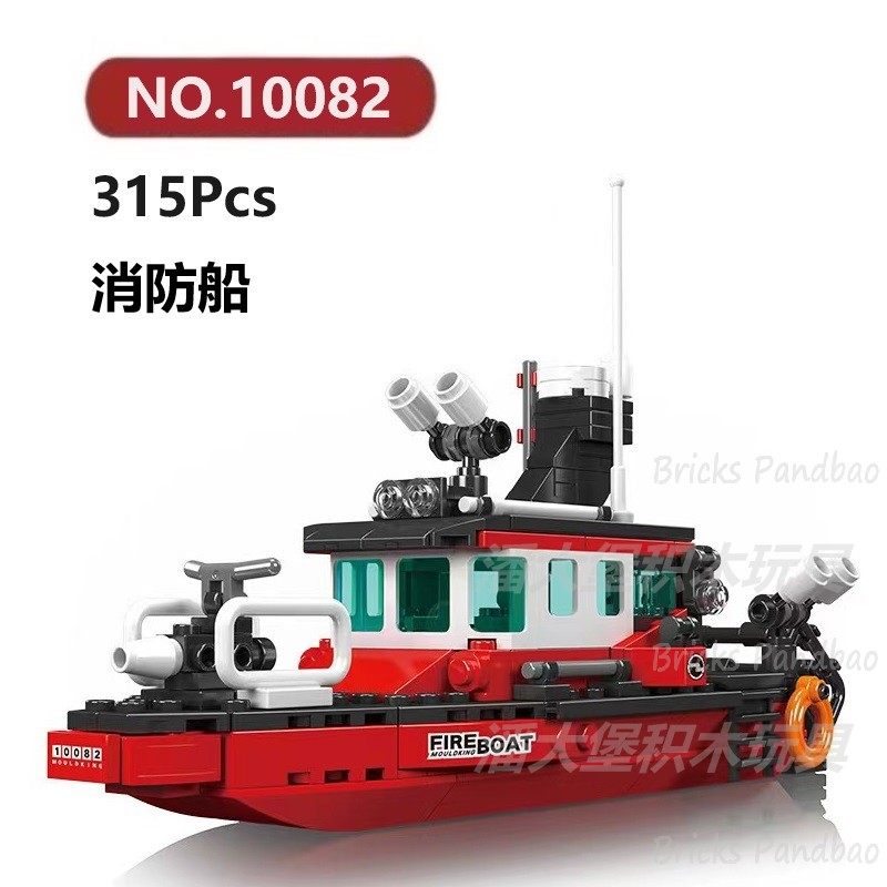 📚 消防船315颗粒工程船舶舰艇海滨船坞MouldKing积木玩具拼装模型