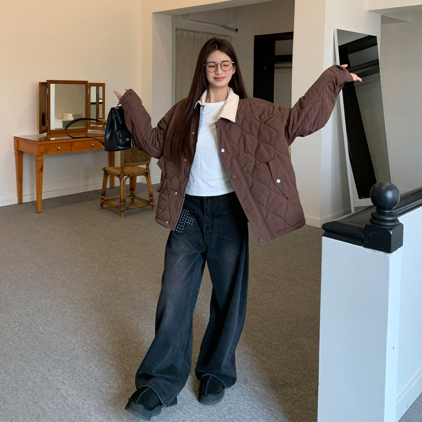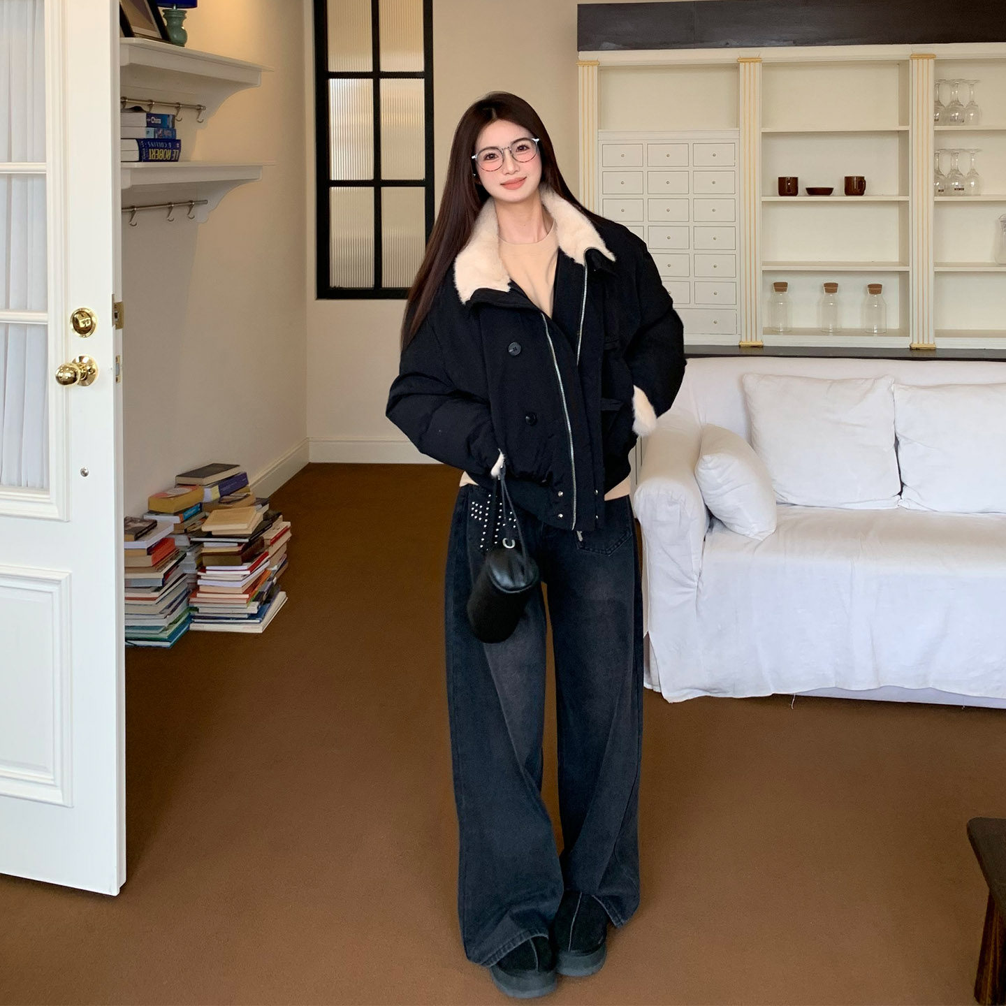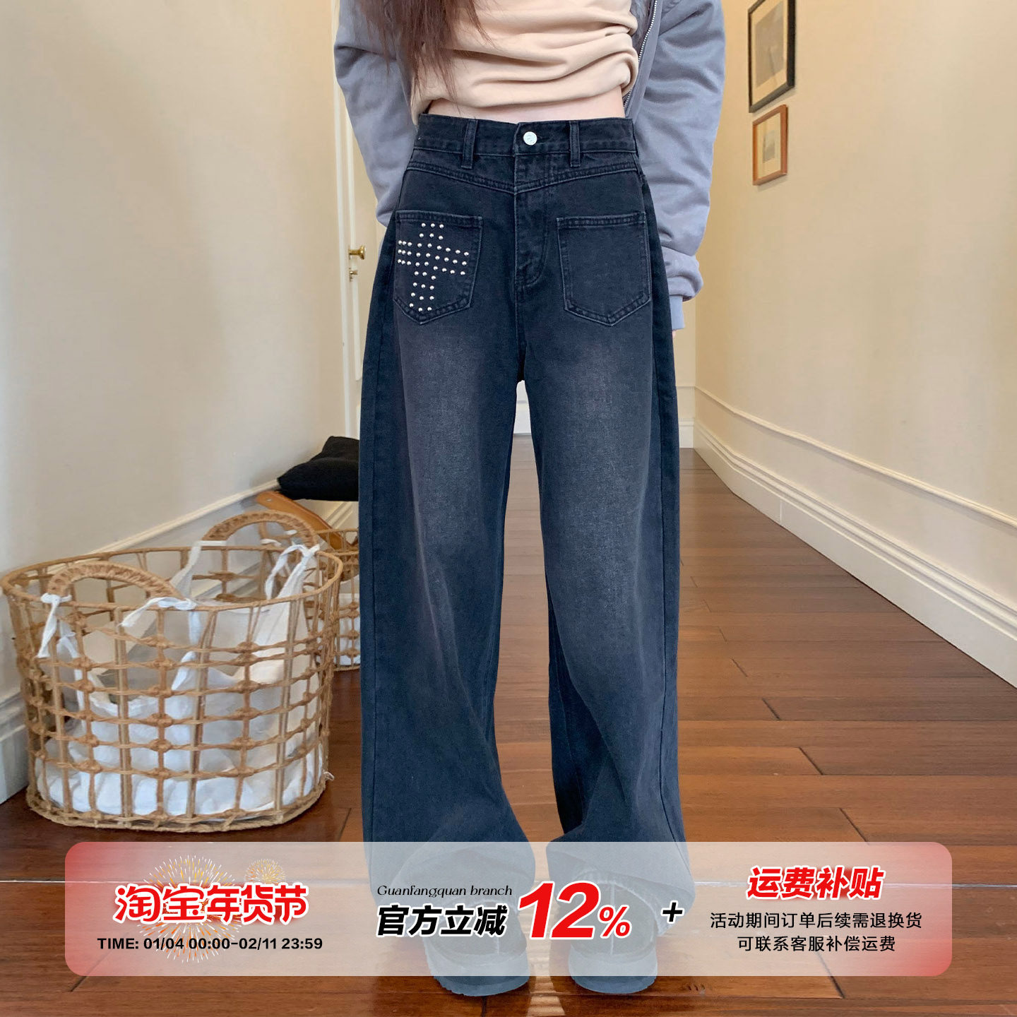 📚 橘子树在哪儿十字架柳钉口袋牛仔裤女秋冬休闲宽松阔腿裤拖地裤子