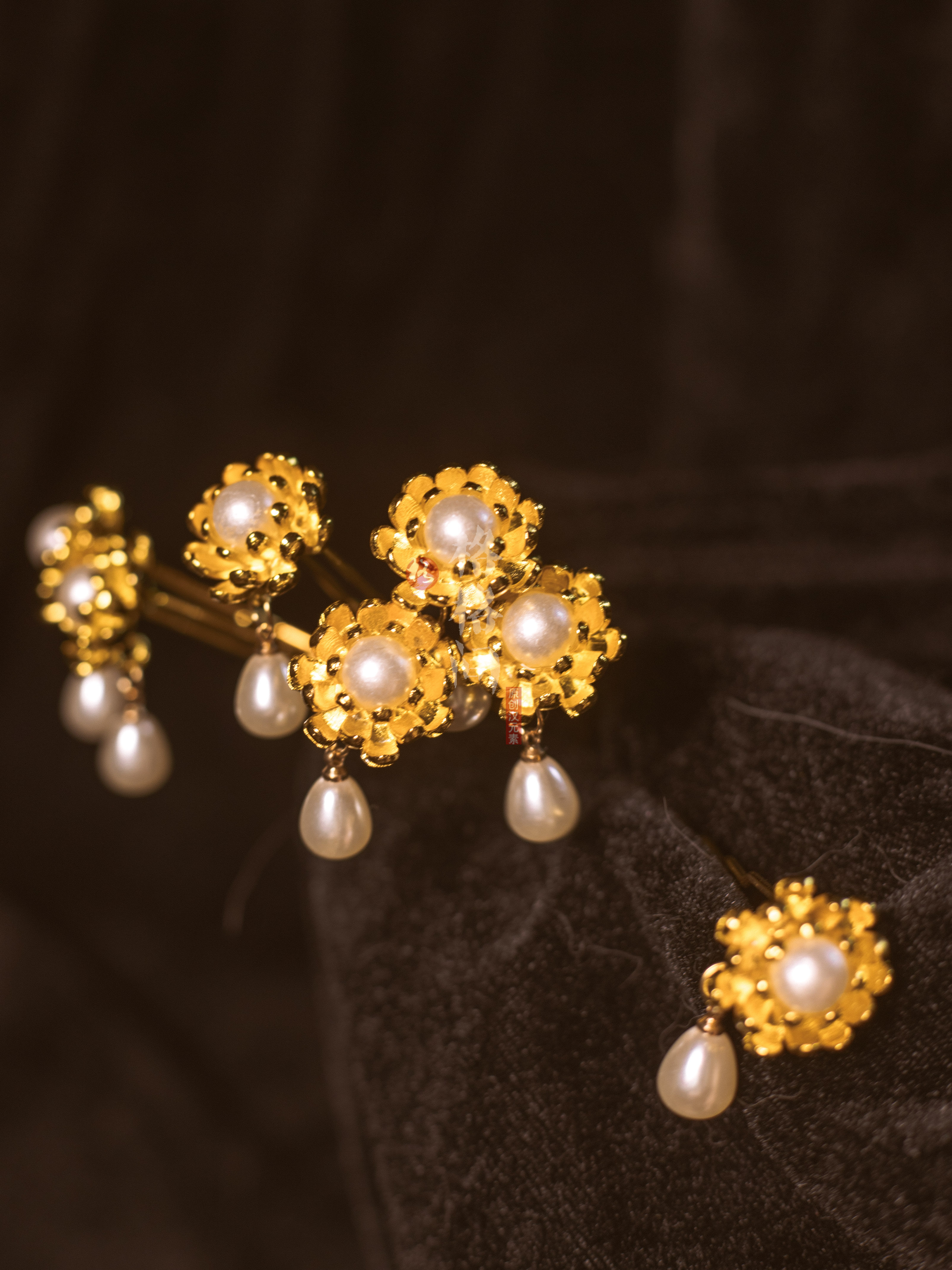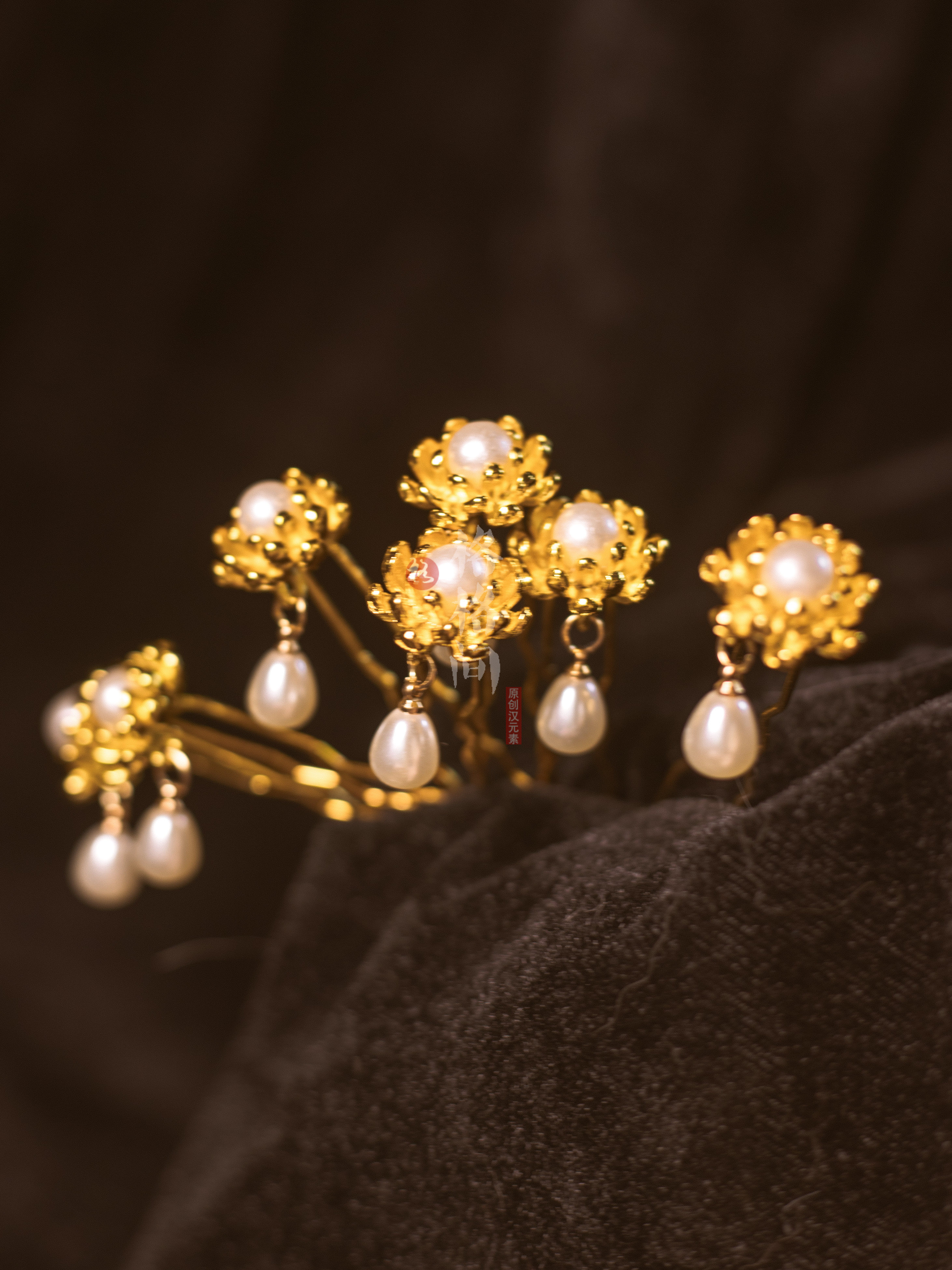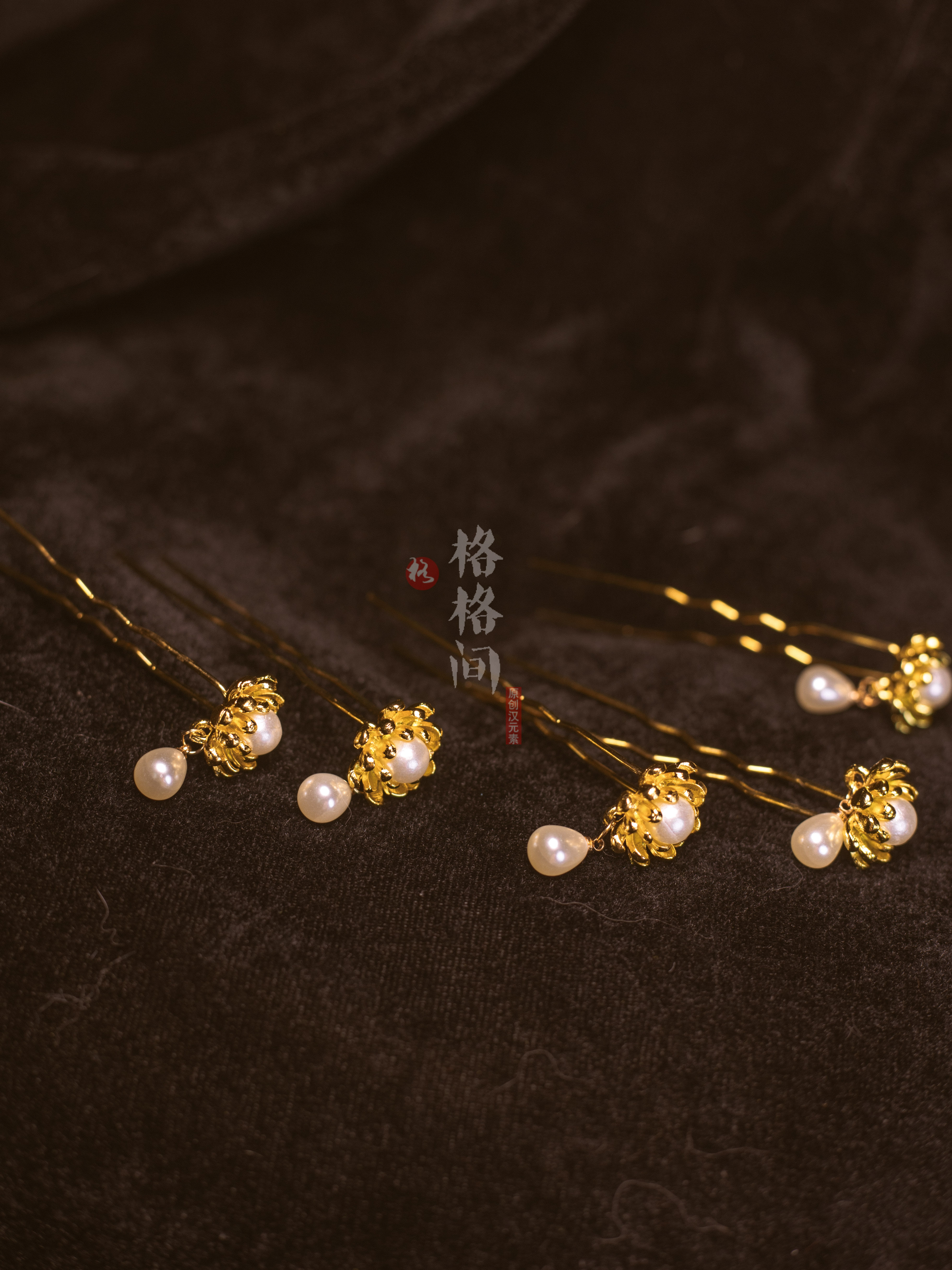 📚 格格间原创汉服发饰莲花U钗珍珠花朵小簪小花发钗头饰明制点缀