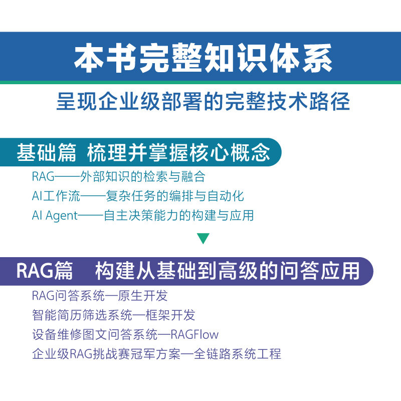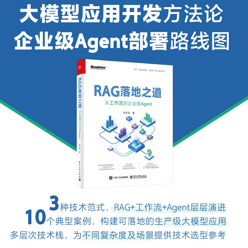 📚 官方旗舰店 RAG落地之道 从工作流到企业级Agent 本书系统阐述了大模型应用从基础概念到企业级部署的完整技术路径 电子工业出版社