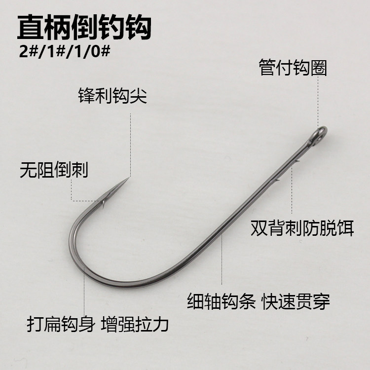 📚 精品碳钢直柄钩长柄倒钓钩无铅自由钓组精细背刺鲈鳜鱼软饵钩路亚