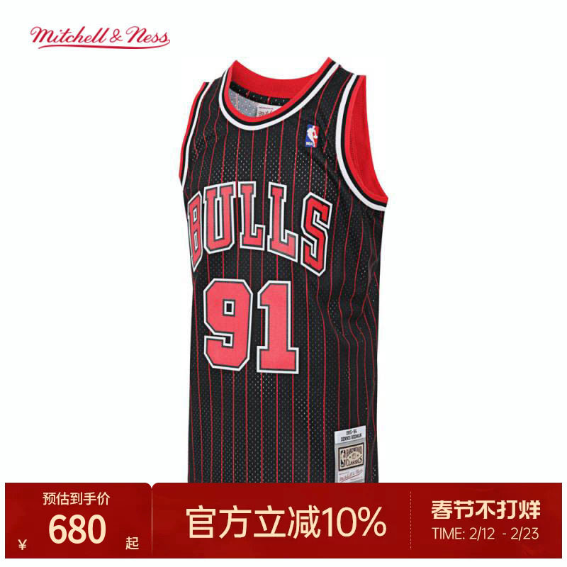 📚 公牛队罗德曼95-96赛季NBA官方MN复刻91号球衣SW球迷版