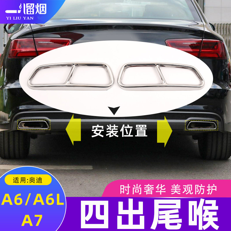 📚 适用16-18款奥迪A6A6L A7 Q7改装四出尾喉罩排气管不锈钢框a6配件