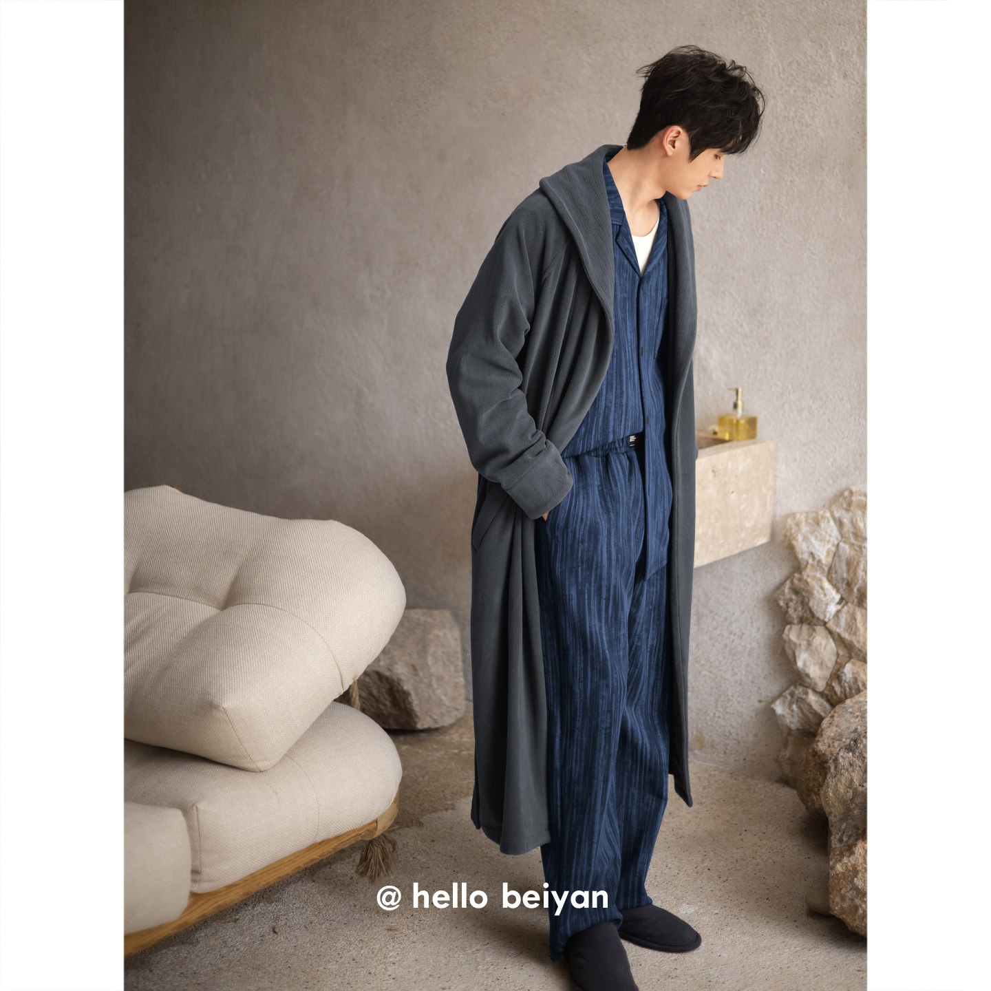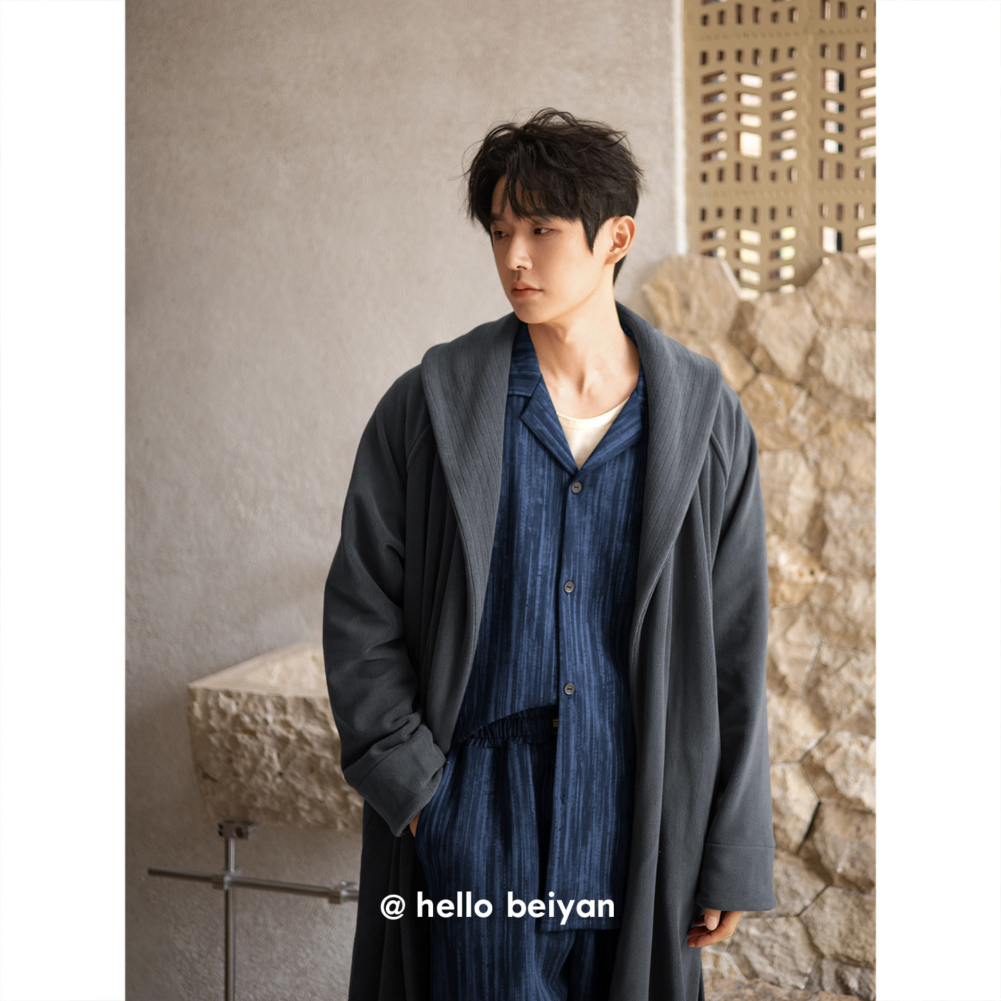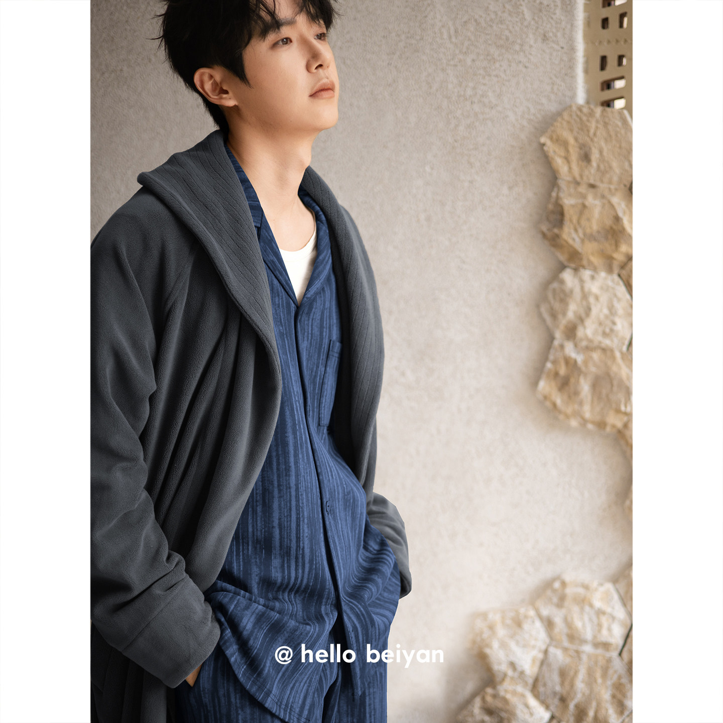 📚 贝妍新款珊瑚绒睡衣男士秋冬季加厚加绒睡袍可外穿中长款保暖外套