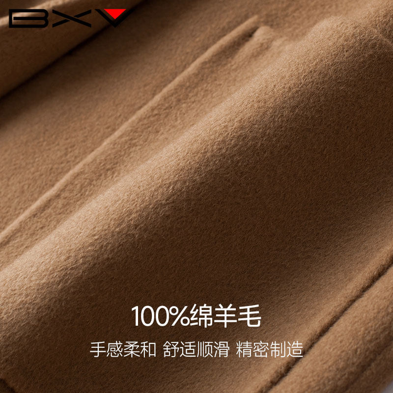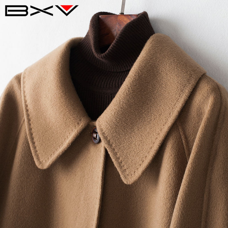 📚 BXV娃娃领双面羊绒大衣女中长款2026春新款绵羊毛纯色双面呢外套