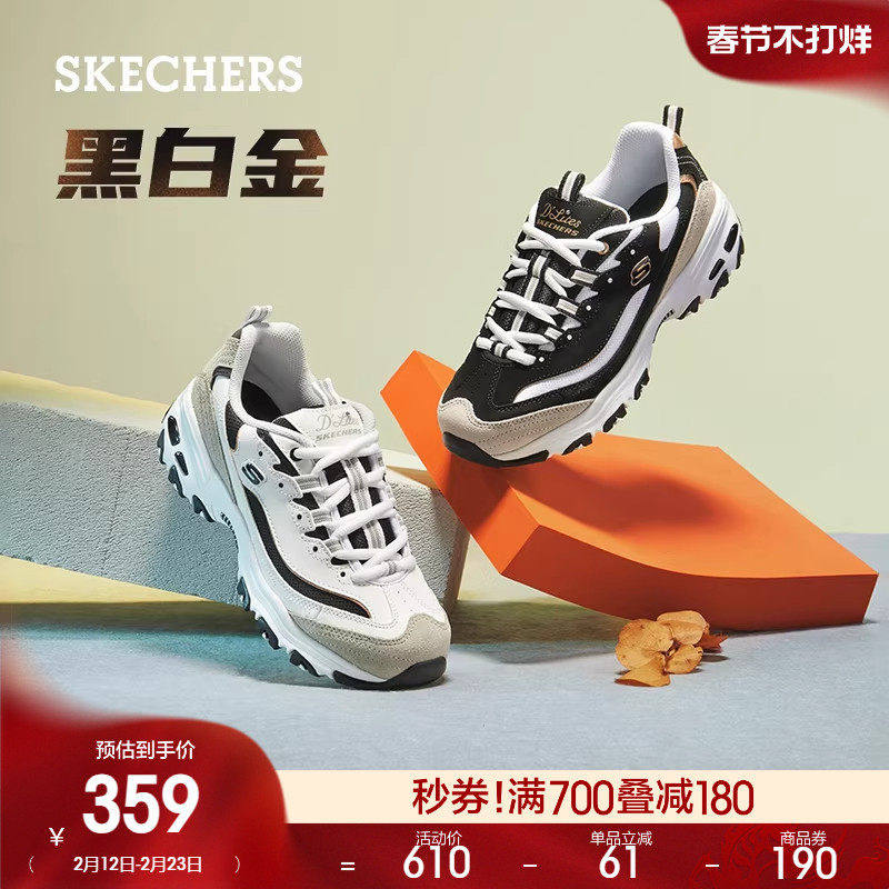 📚 斯凯奇黑白金|春季新款男鞋舒适复古老爹鞋百搭厚底运动休闲鞋