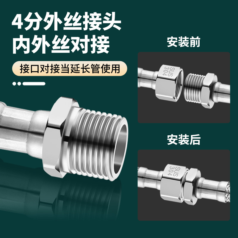 📚 4分内外丝延长管304不锈钢编织冷热进水加长管家用管高压防爆软管