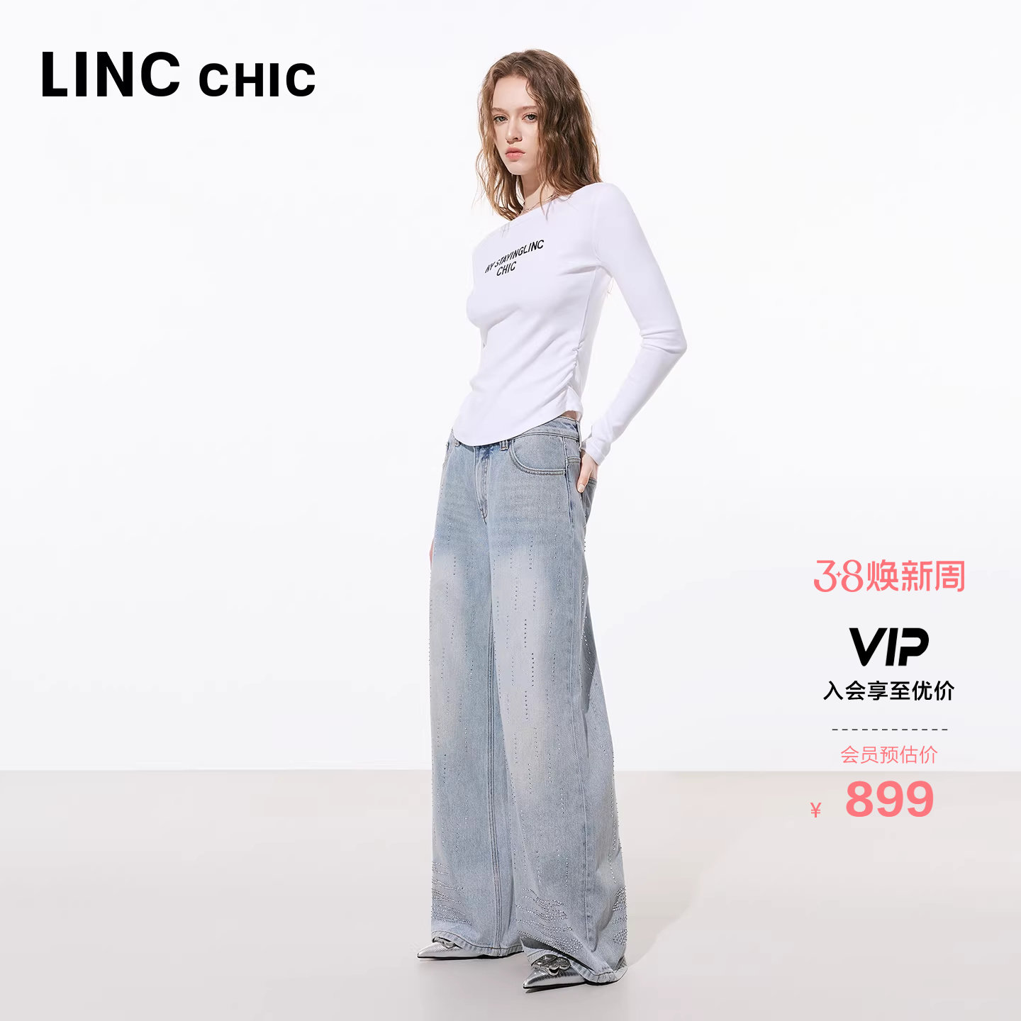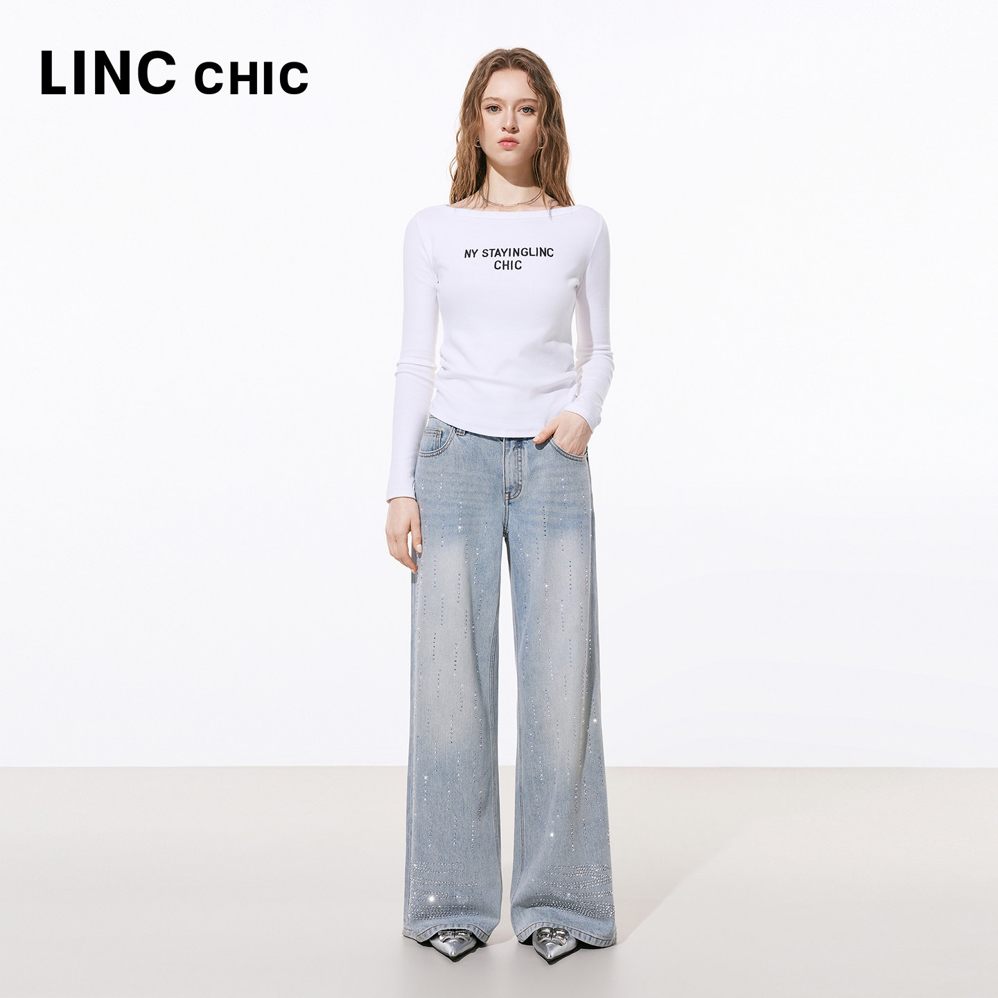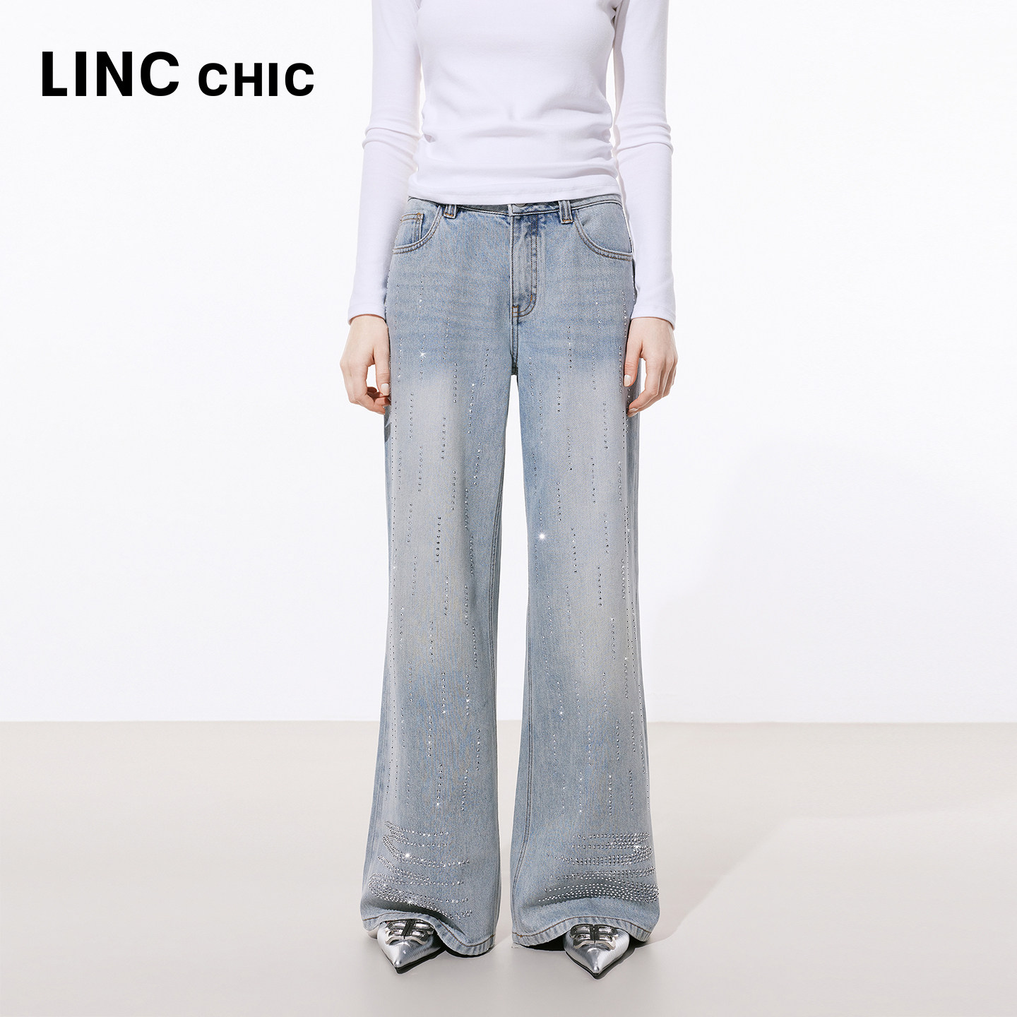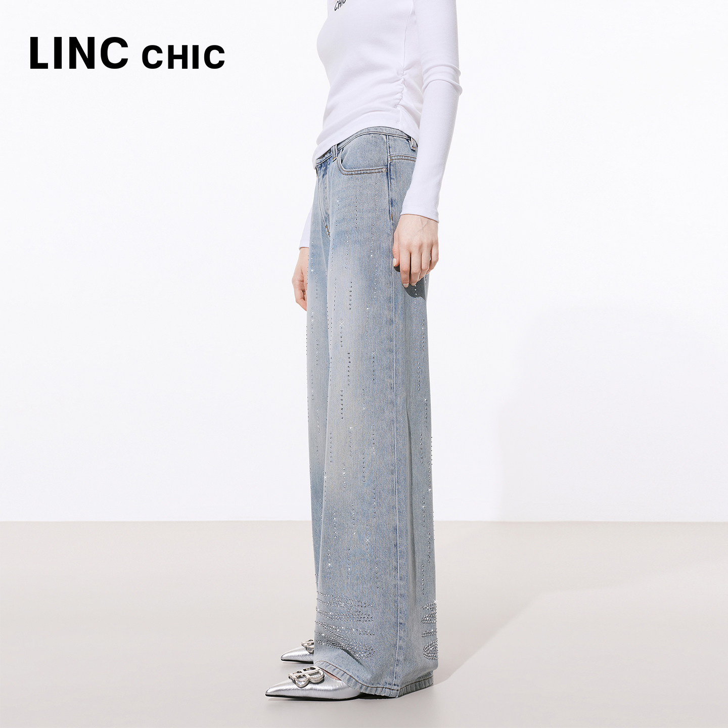 📚 LINCCHIC金羽杰2026年春季新品宽松直筒闪钻牛仔裤女S261JE004Y
