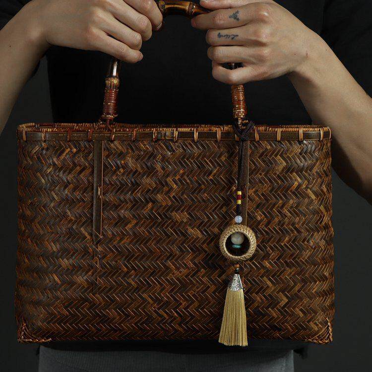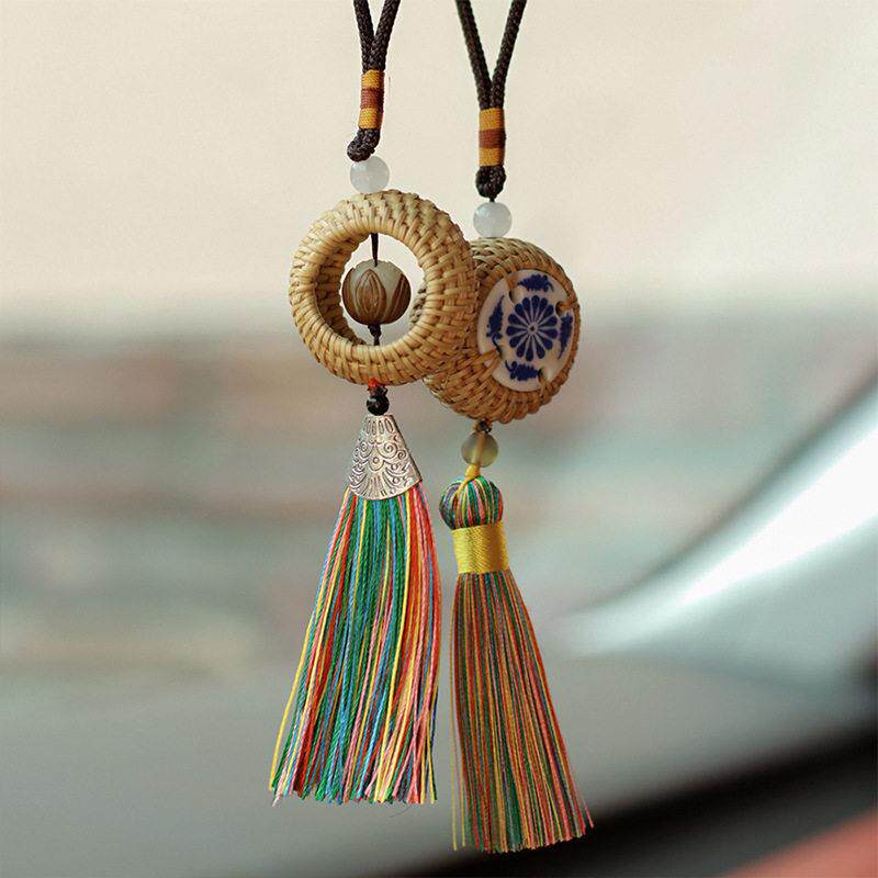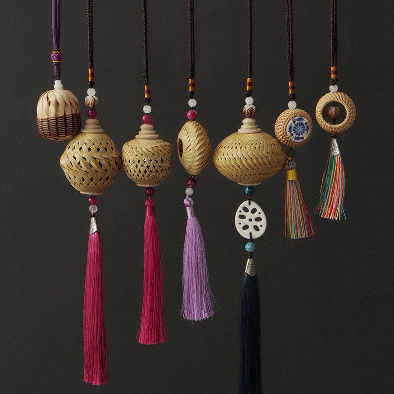 📚 竹藤编织流苏挂件创意中式旗袍玉石腰挂古装配饰汉服竹包挂饰