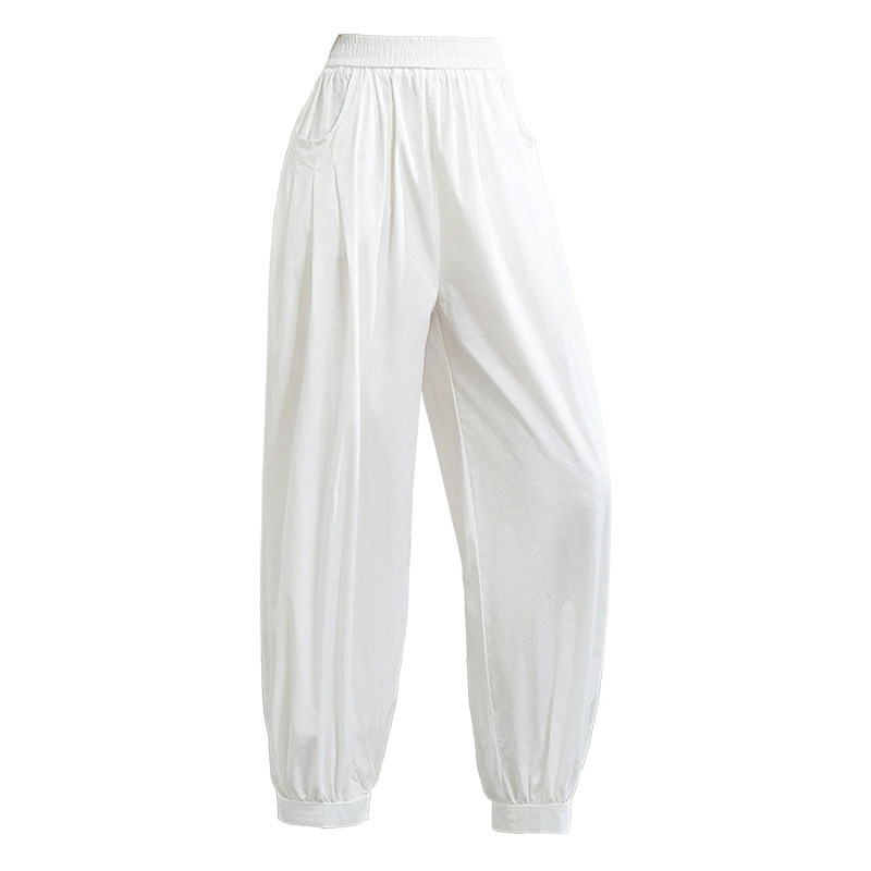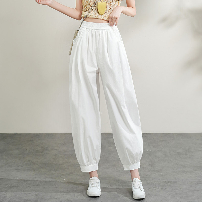 📚 白色休闲裤女夏季2025年新款高腰宽松束脚灯笼裤九分裤薄款空气裤