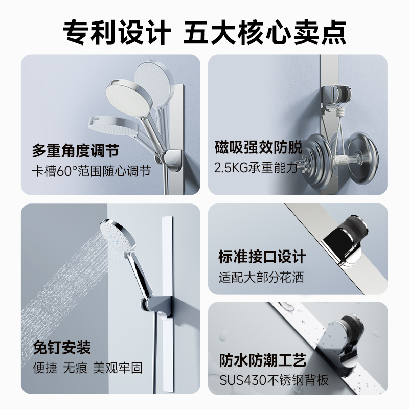 📚 瑞摩&天音花洒支架免打孔不锈钢磁吸万向调节淋浴室无顶喷固定座