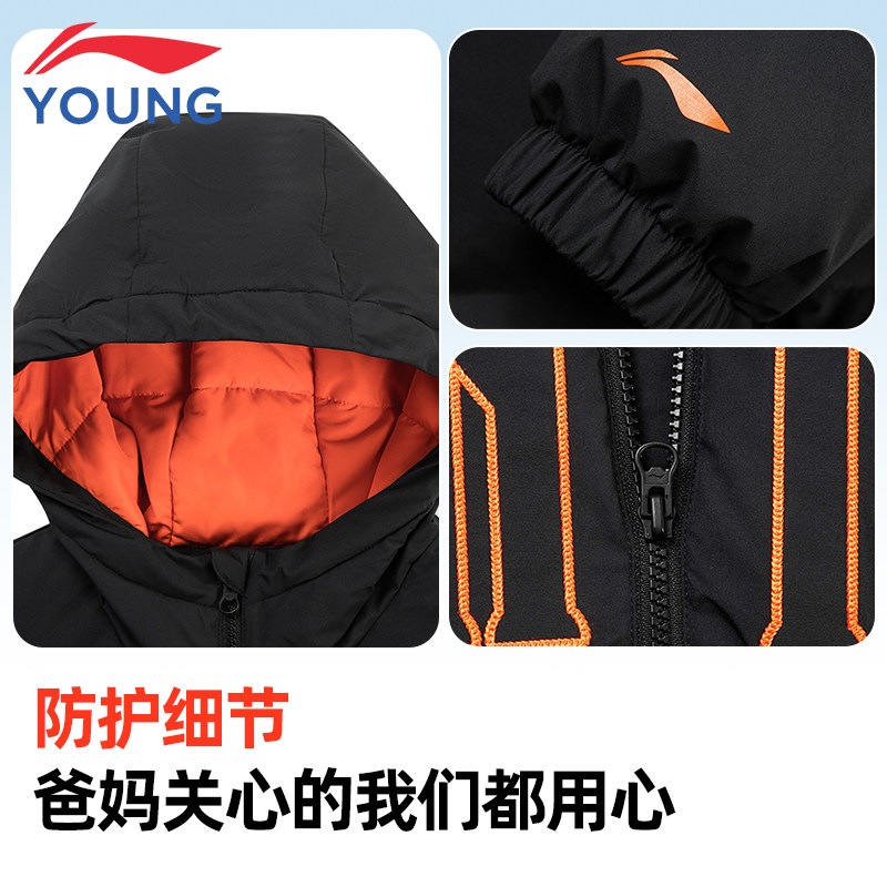 📚 李宁童装儿童羽绒服男童短款2025新款青少年保暖外套连帽加厚冬装
