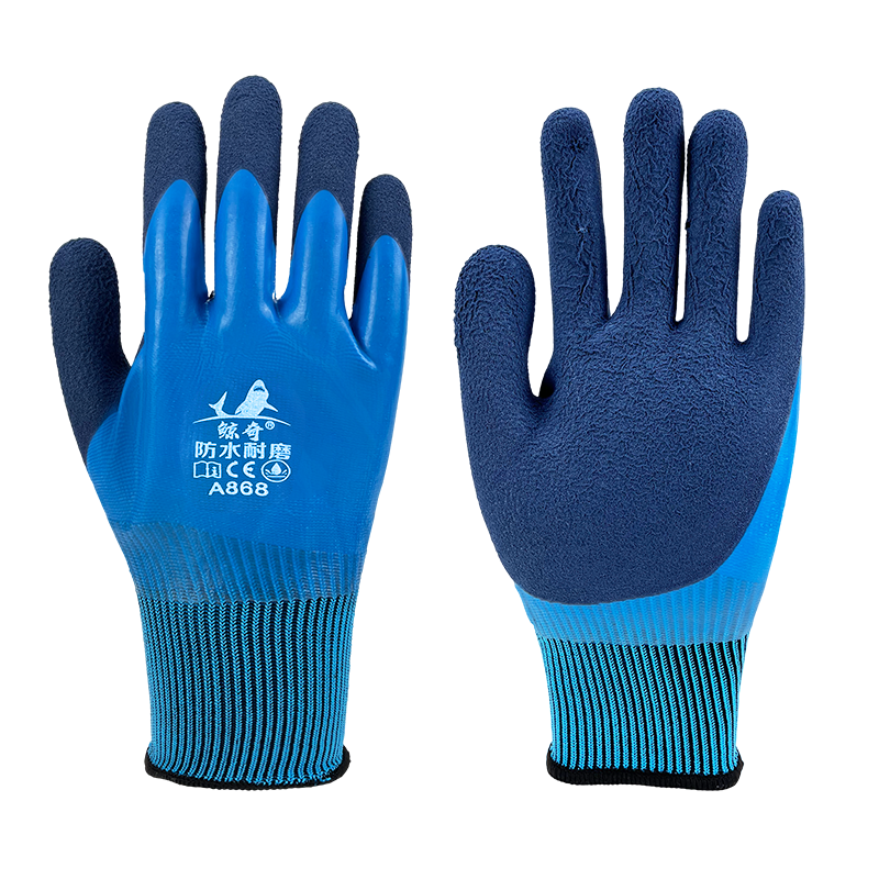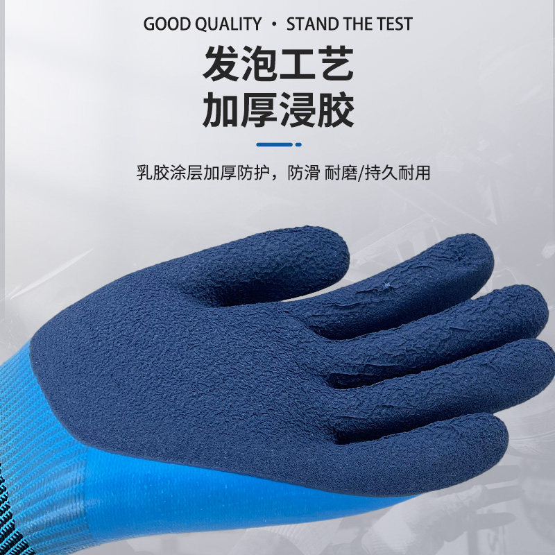 📚 鲸奇A868防滑耐用橡胶胶皮工地干活劳保手套防护加厚棉线皱纹挂胶