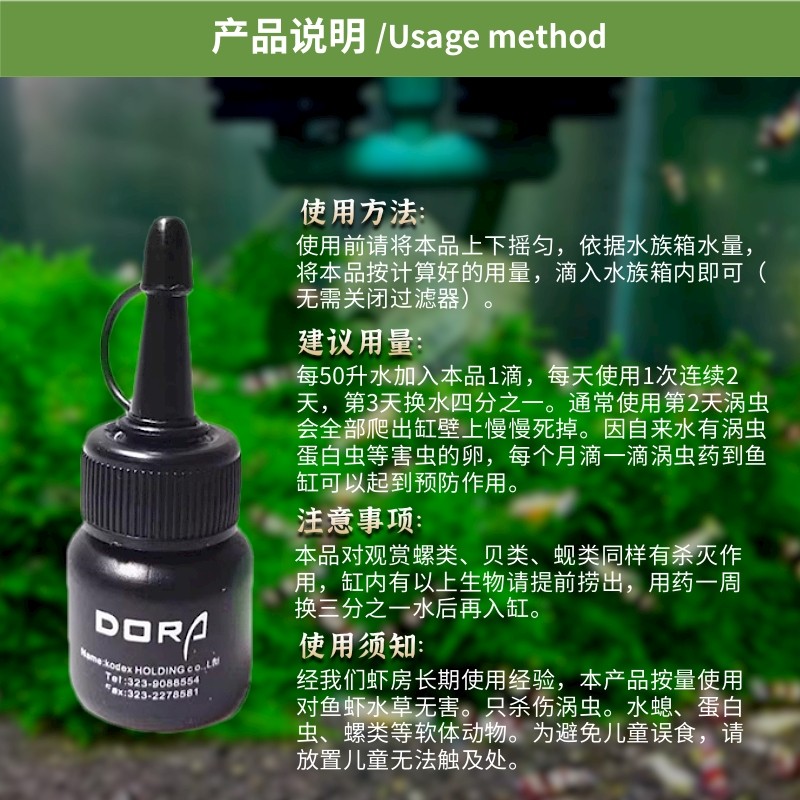 📚 多乐虾缸除涡虫药水晶虾米虾鱼缸专用杀涡虫水螅蛋白虫小黑瓶