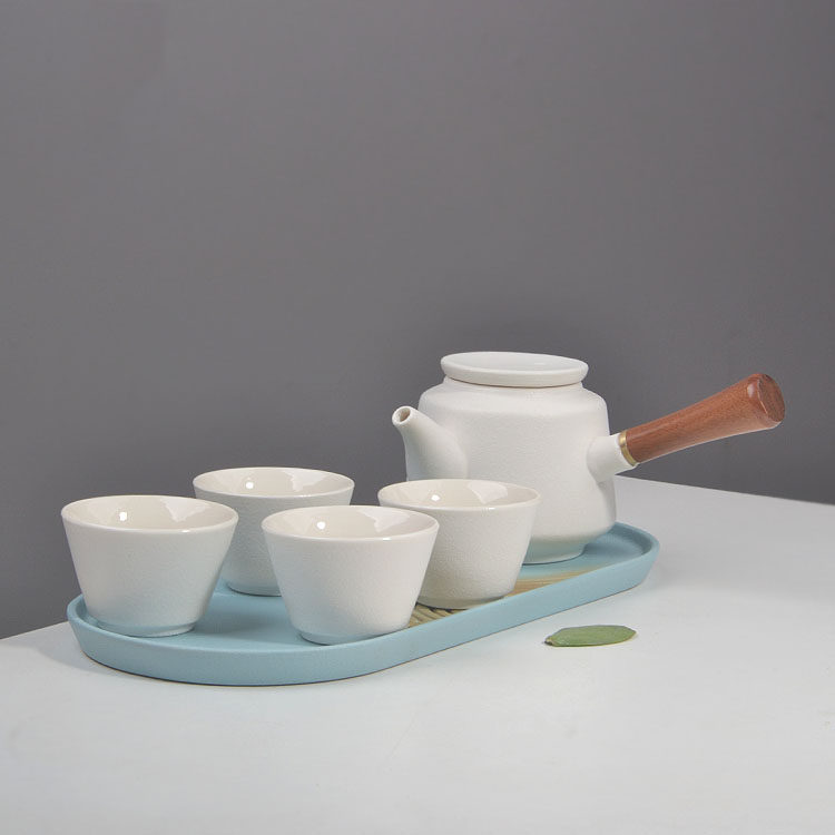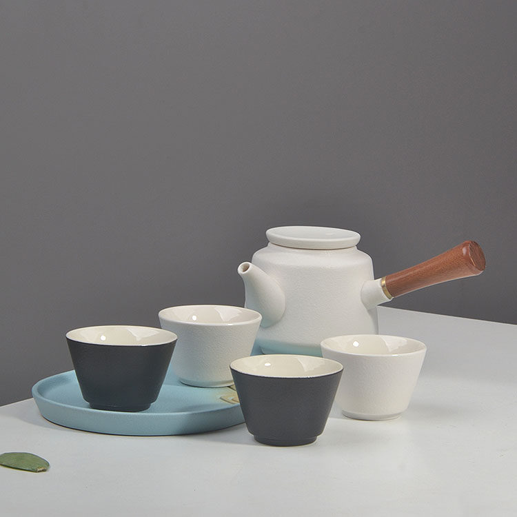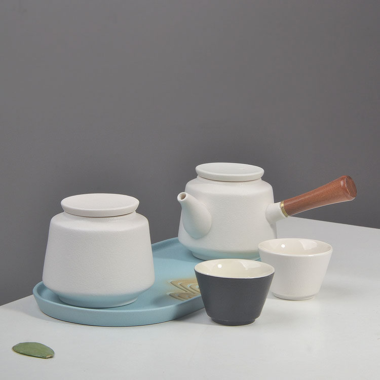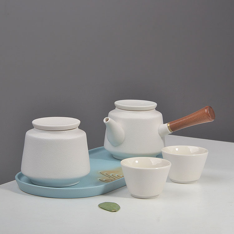 📚 一壶两杯茶具套装侧把壶家用泡茶杯茶壶四杯快客陶瓷茶盘迷你酒店