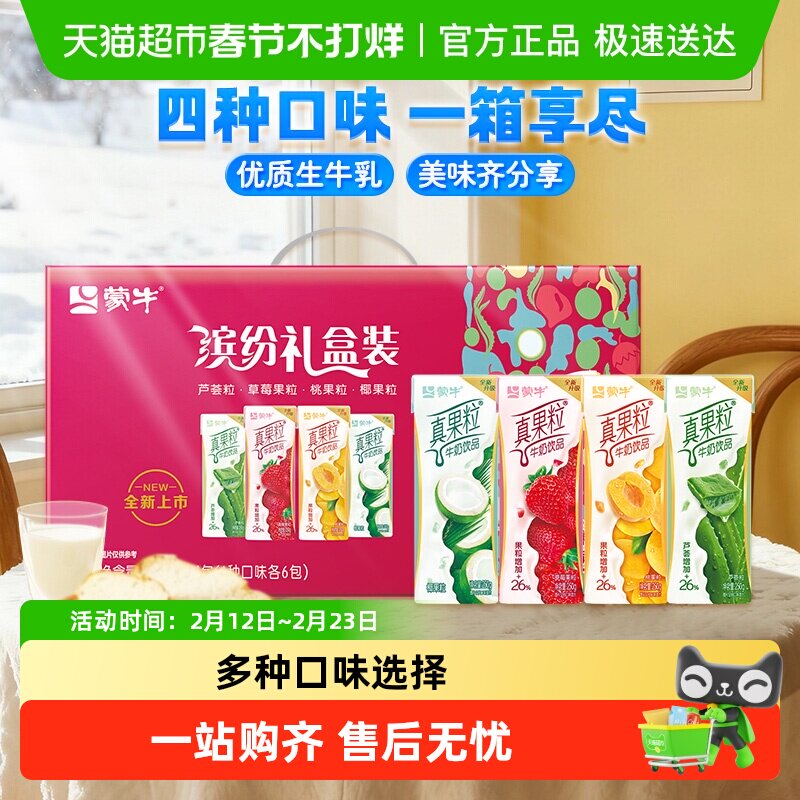 📚 【最早日期10月产】蒙牛真果粒牛奶饮品礼盒装250g*24盒多口味