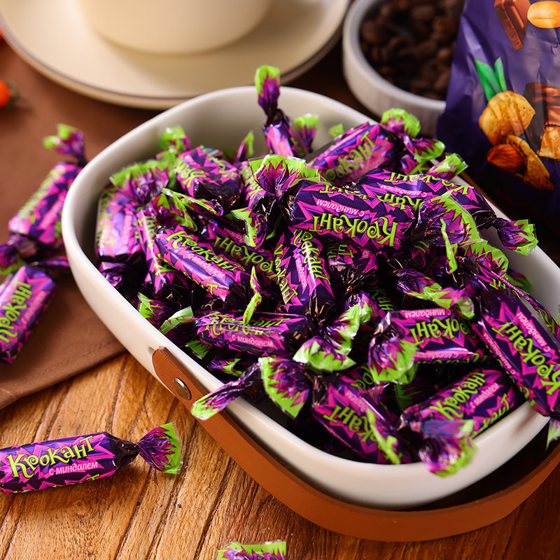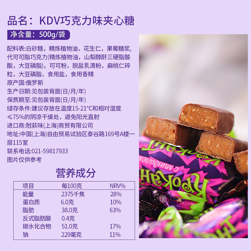 📚 俄罗斯紫皮糖kpokaht巧克力进口夹心糖果散装过年小零食原装KDV
