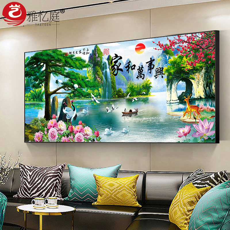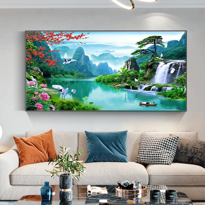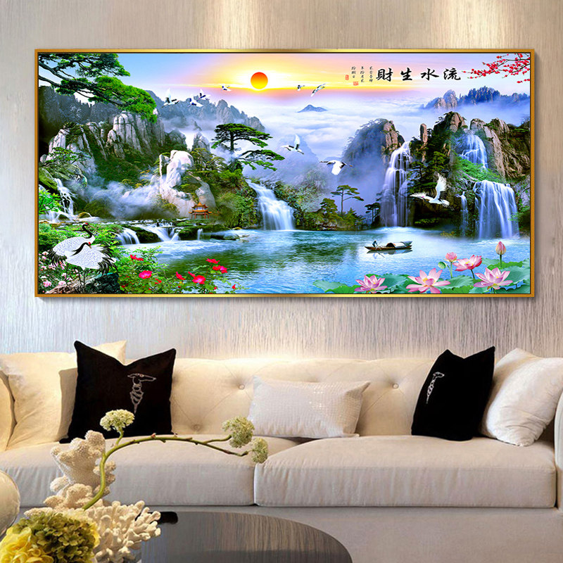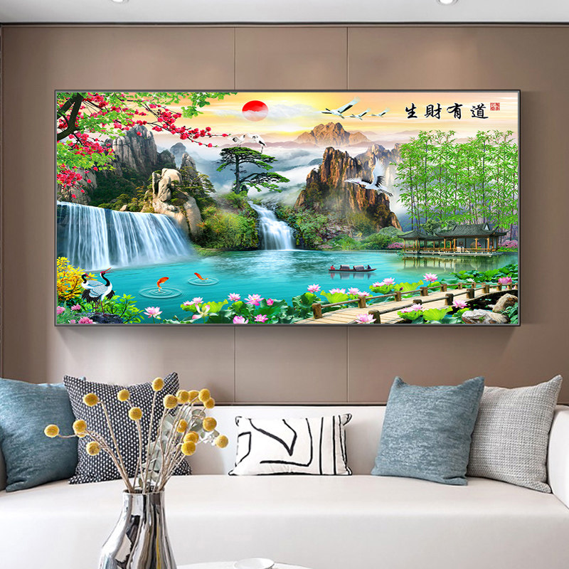 📚 网红客厅装饰画流水生财水风景画现代简约沙发背景墙画挂画晶壁山