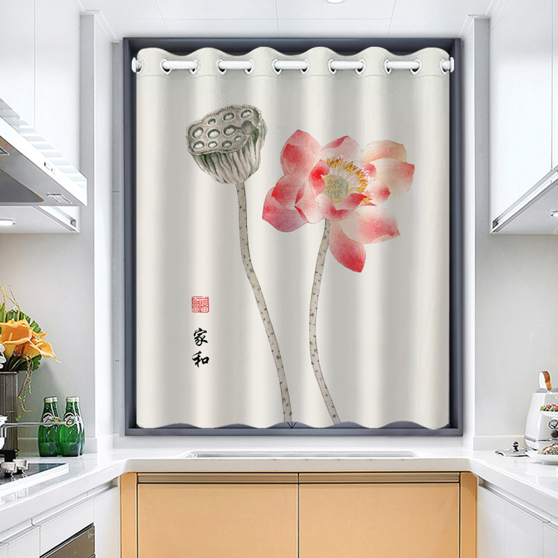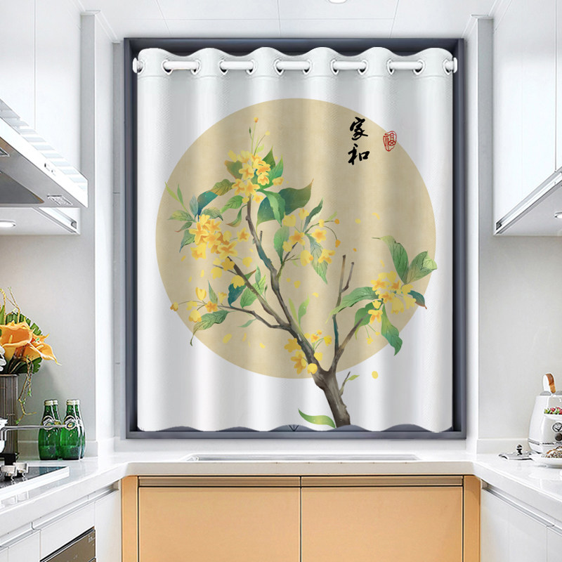 📚 加厚面料 中式家用厨房窗帘防油烟窗户防晒遮阳遮挡帘窗纱拉帘