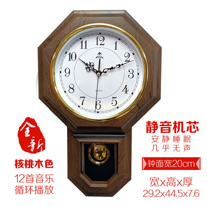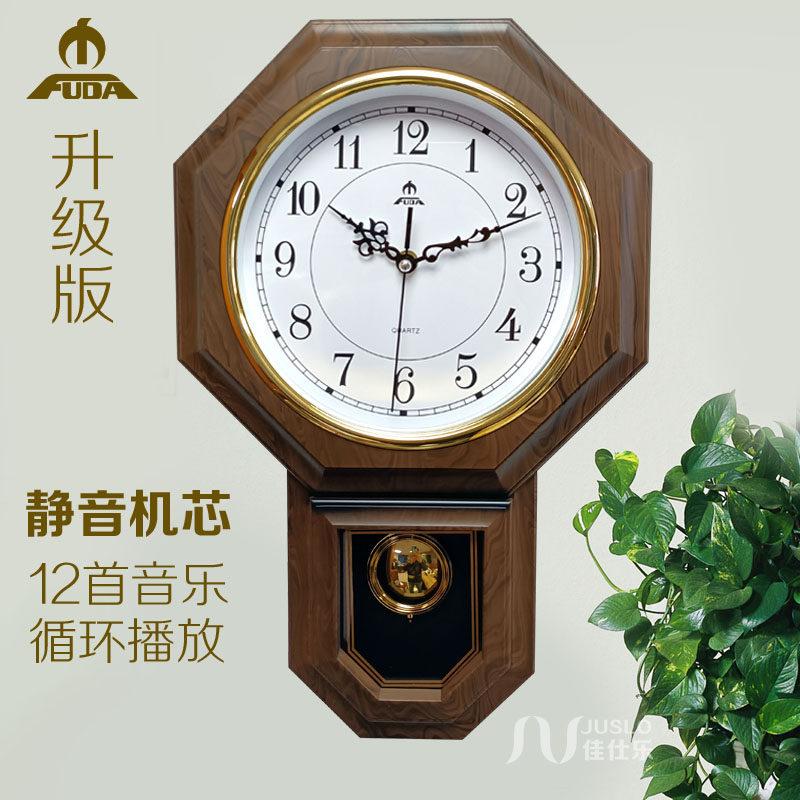 📚 正品富达音乐客厅挂钟静音 整点报时钟摇摆大气复古经典红木纹