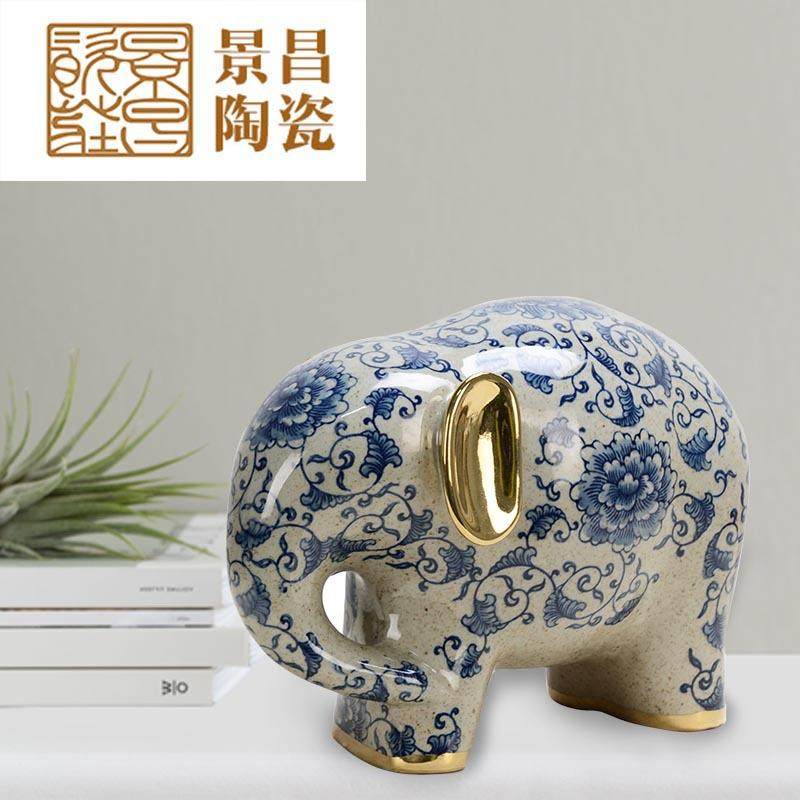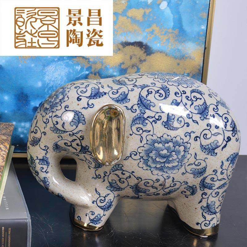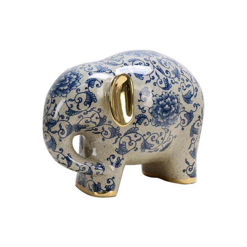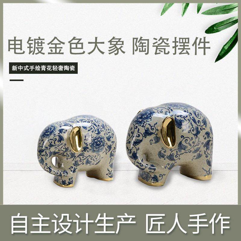 📚 手绘青花陶瓷摆件大象陶瓷玄关摆件书房茶室琴房摆件