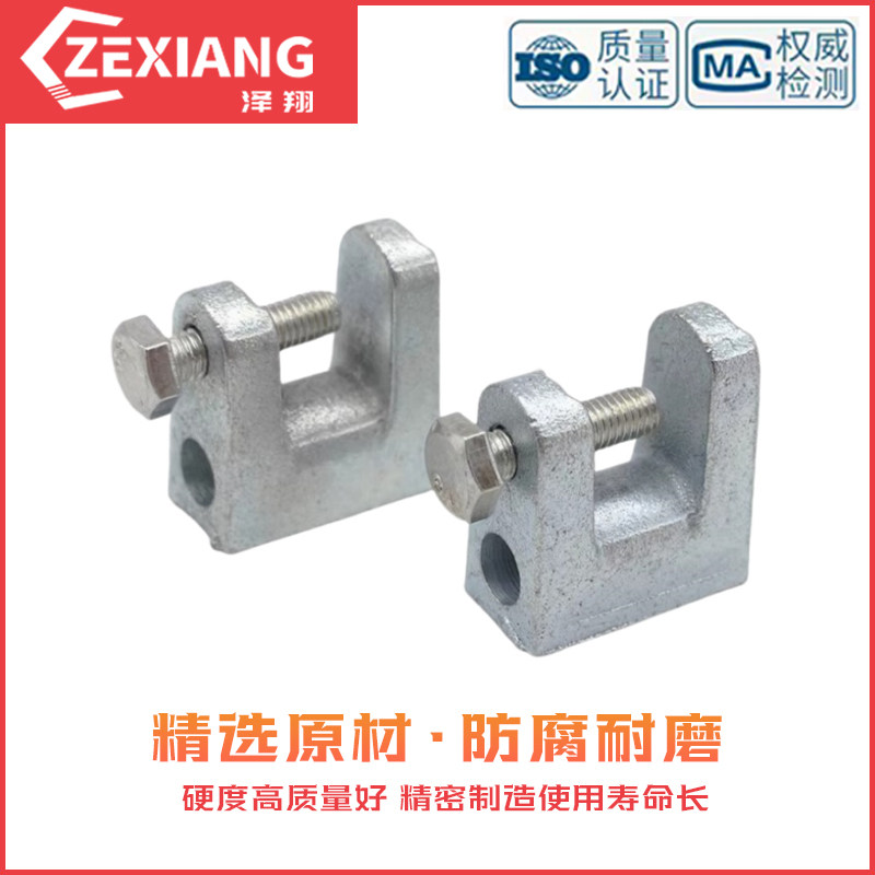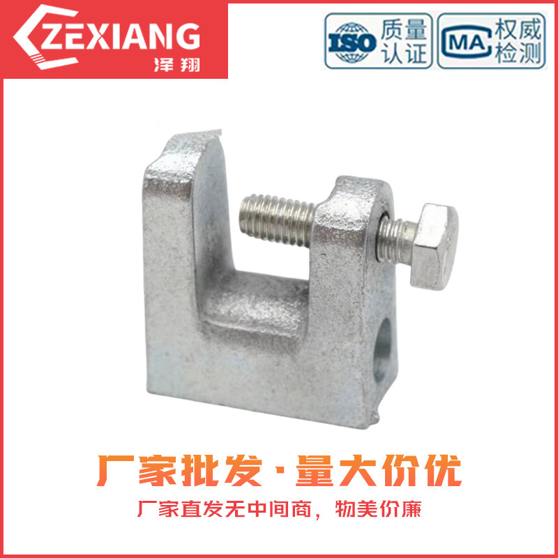 📚 泽翔镀锌铸铁老虎卡工字钢槽钢配件丝杆吊卡方形管卡挂钩铁皮虎口