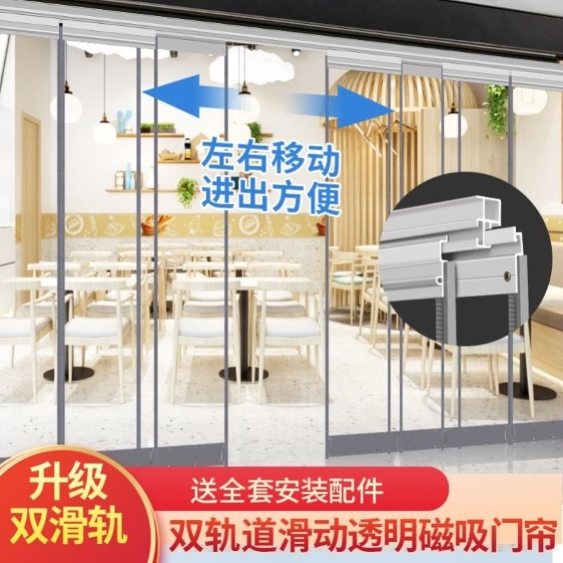 📚 平移滑动折叠磁吸门帘四季通用可收店铺商用pvc防风隔断皮帘子冬