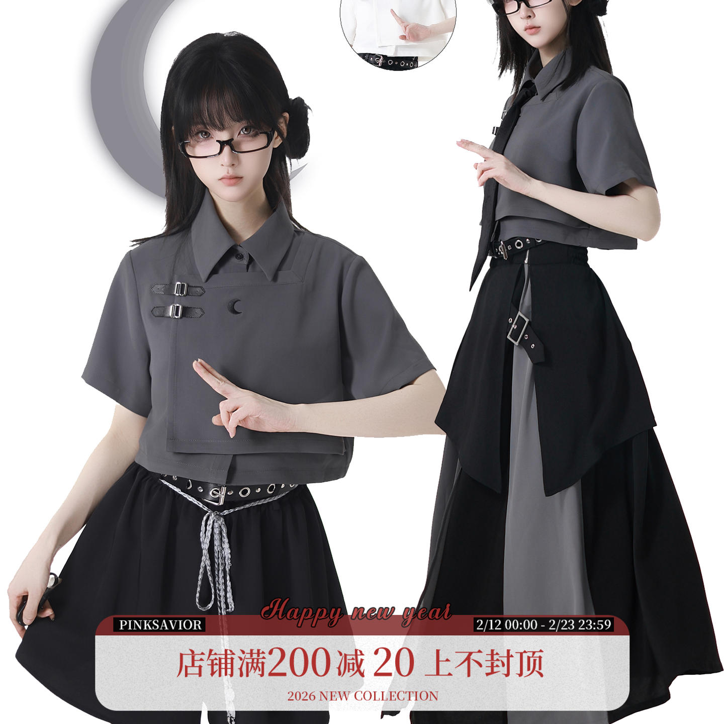 📚 pinksavior【月迷津渡】设计感灰白刺绣长短袖衬衫显瘦套装新中式