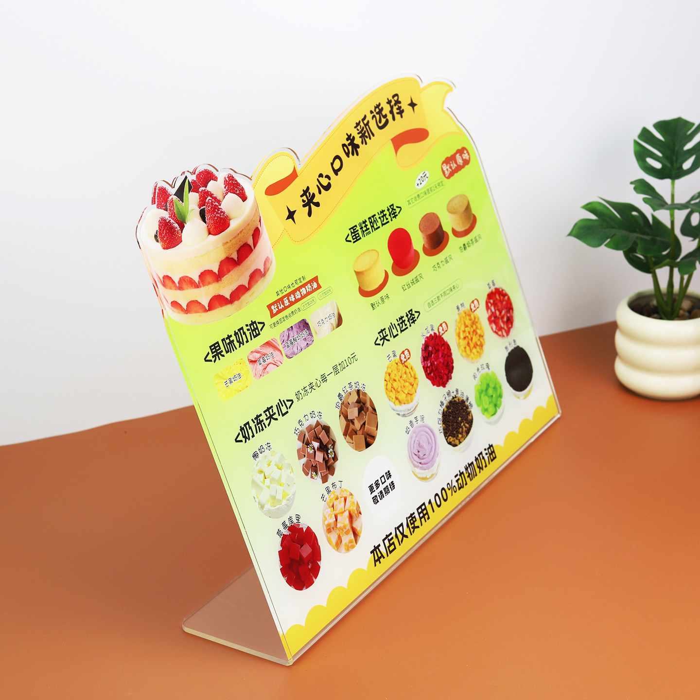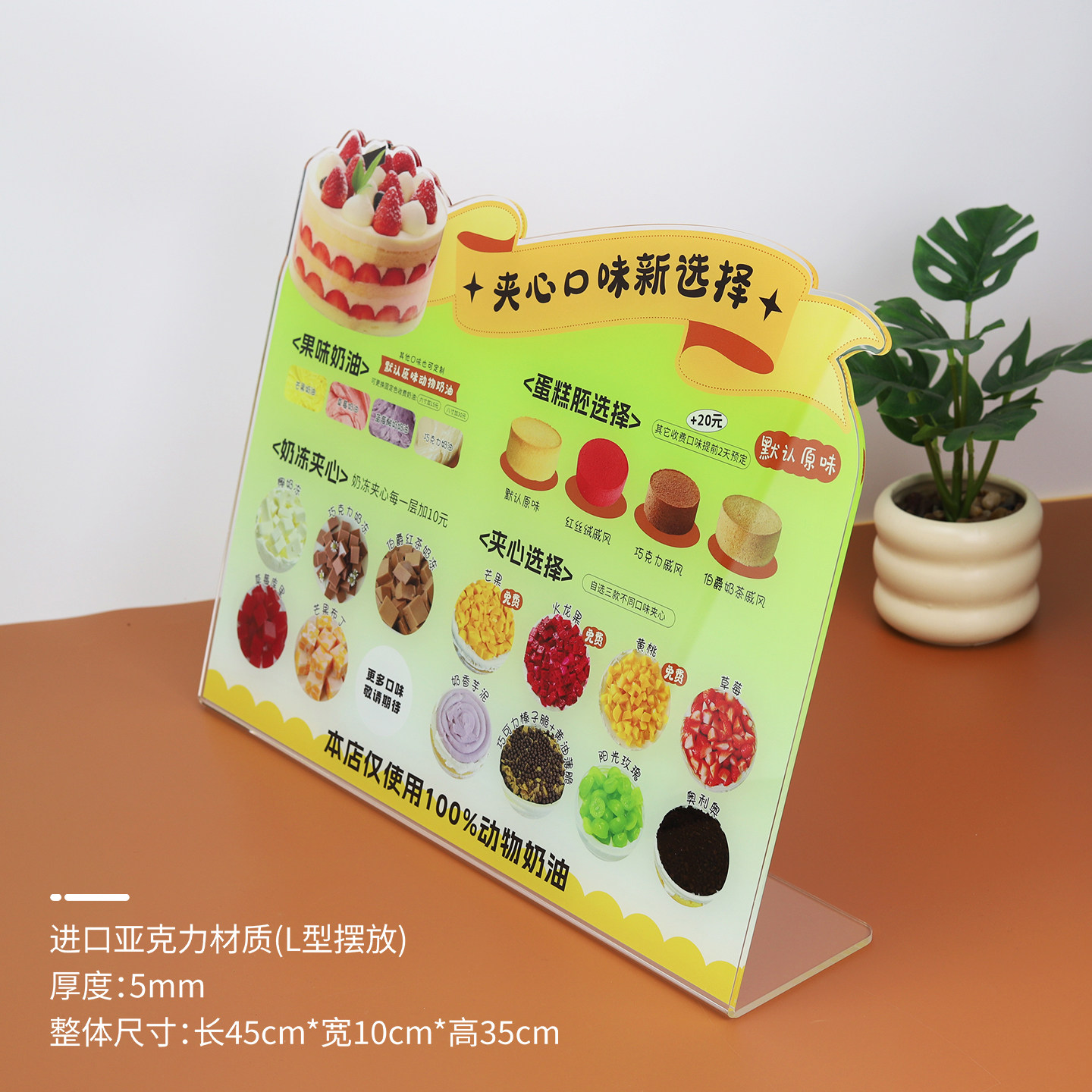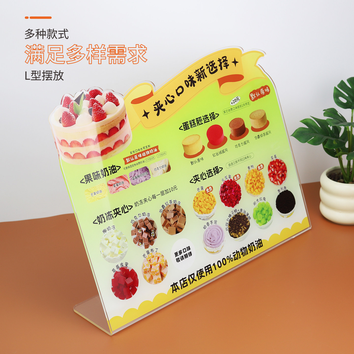 📚 面包烘培西点夹心生日蛋糕柜台促销亚克力L型广告展示牌摆台定制