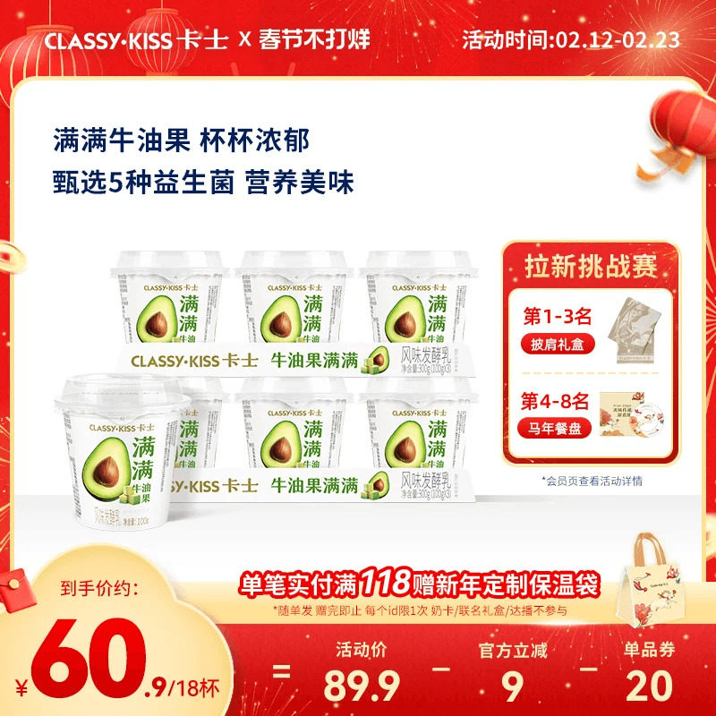 📚 卡士低温酸奶益生菌风味发酵生牛乳早餐酸奶牛油果味100g*18杯