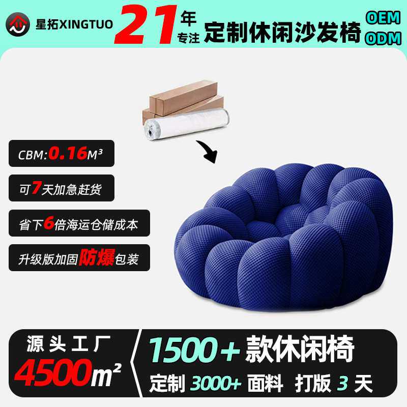 📚 罗奇堡网红足球泡泡定型棉布艺单人沙发椅 客厅休闲椅懒人沙发