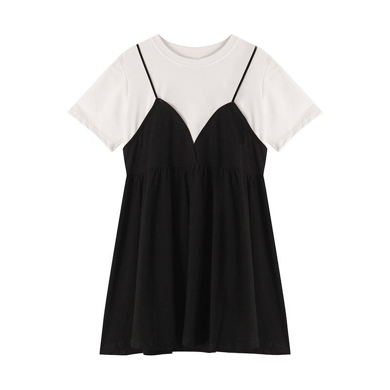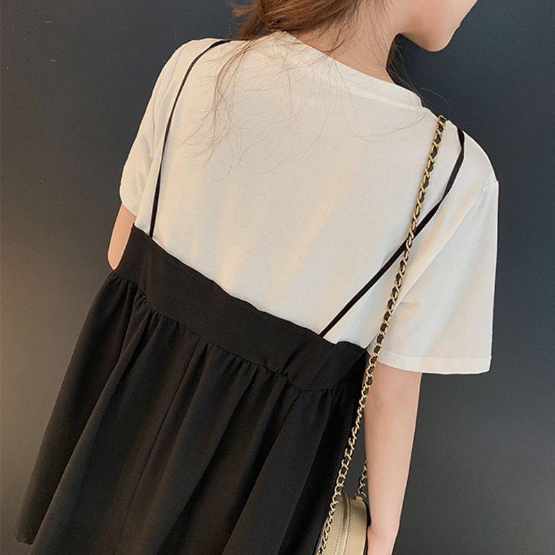 📚 孕妇装夏季连衣裙新款韩版胖MM中长款吊带假两件孕妇裙子上衣
