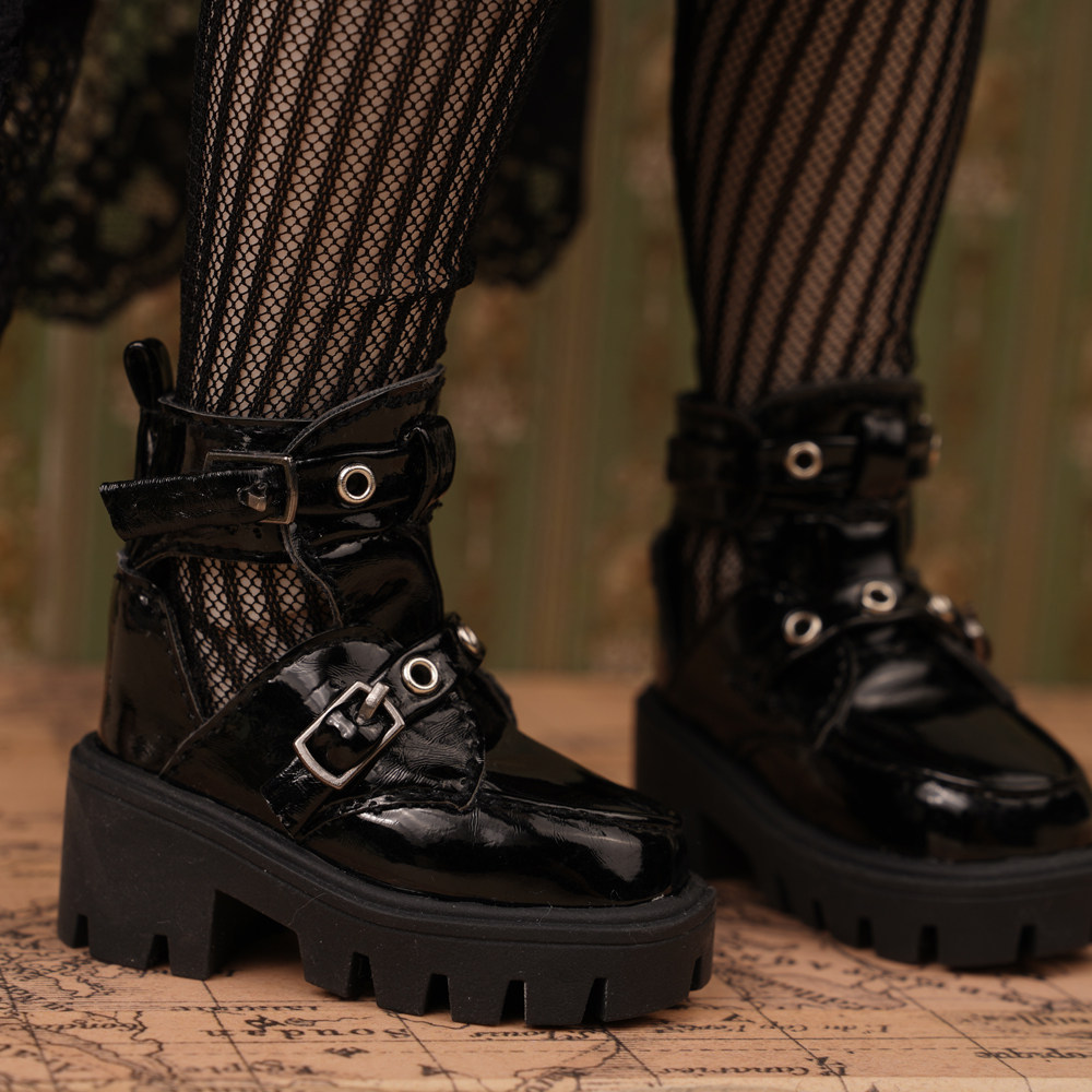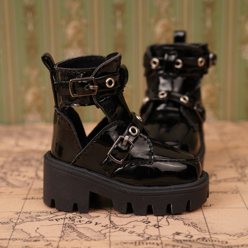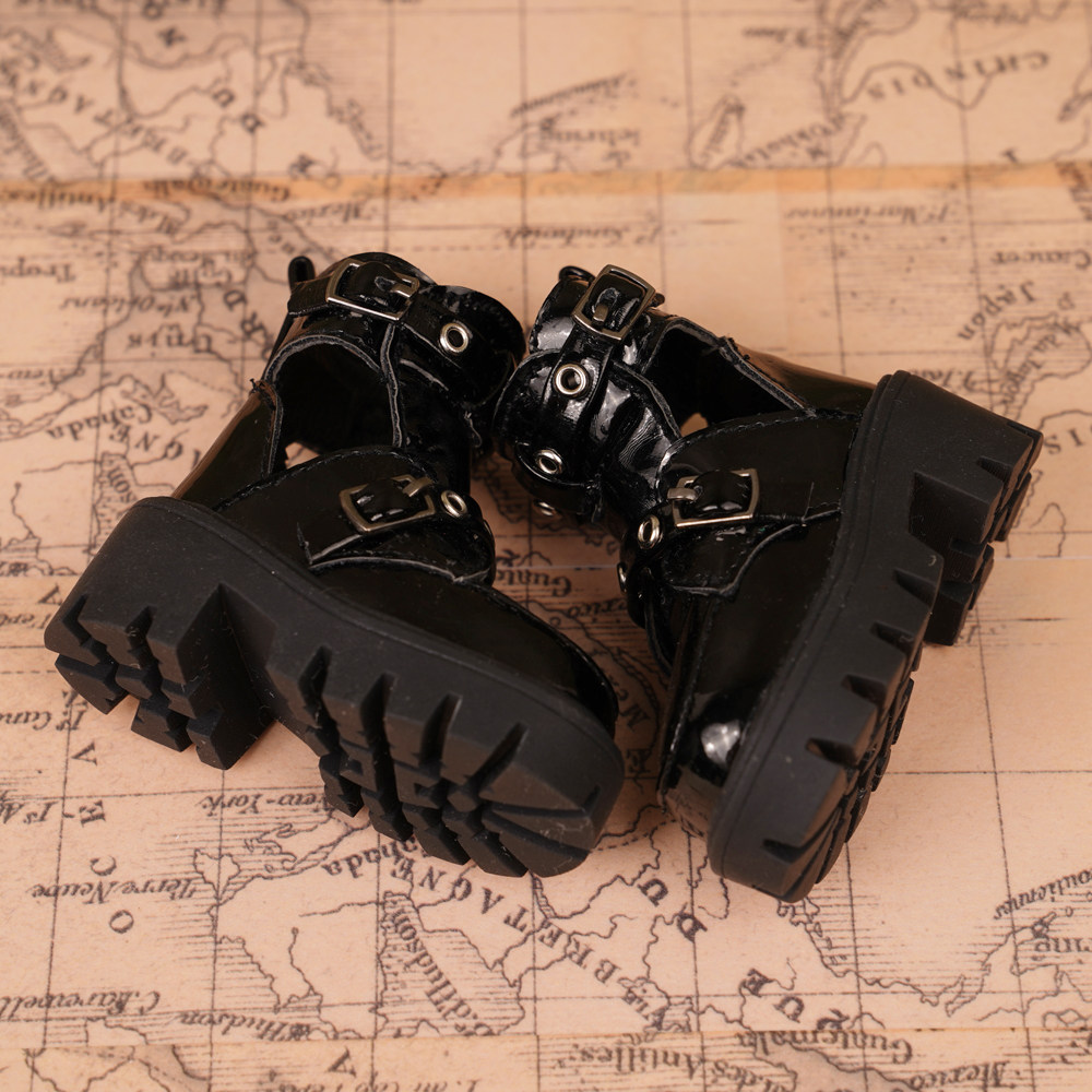 📚 BJD四分娃鞋 熊妹MSD兔豆豆MDD黑色漆皮娃鞋厚底帅气短靴 现货