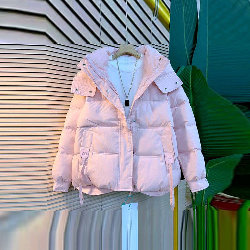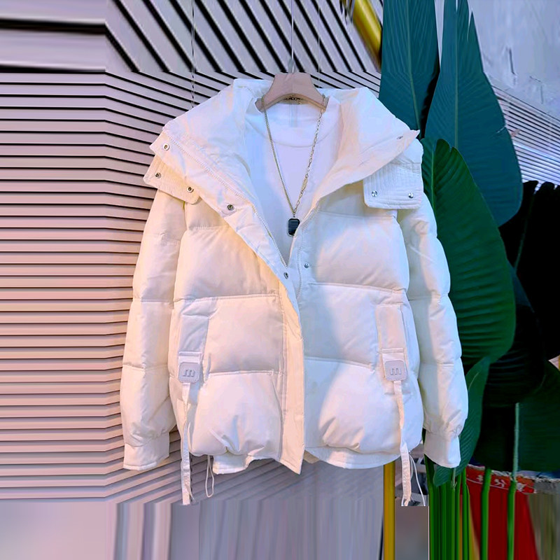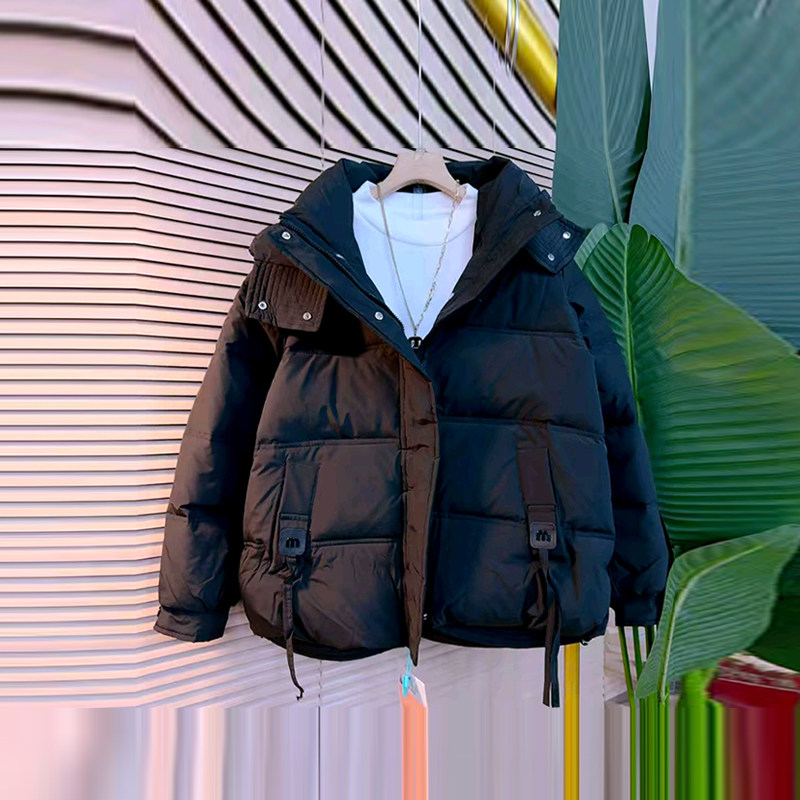 📚 胖妹妹连帽底抽绳棉服外套加肥大码女装纯色简约冬季款百搭面包服
