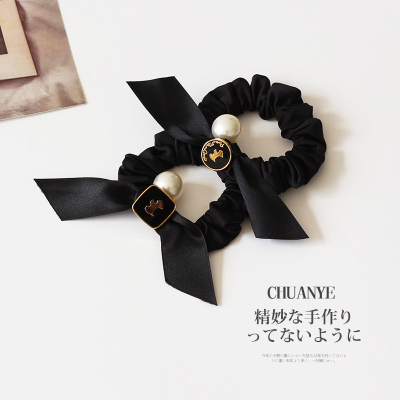 📚 川野法式仿珍珠蝴蝶结小肠发圈新款轻奢时尚扎马尾的皮筋头饰发饰